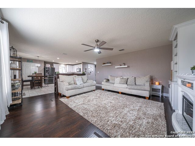 Welcome to 8913 Preserve Trail - the home you've been waiting for! Located in the highly sought-after Silver Oaks neighborhood, this 4-bedroom, 3-bathroom gem sits on a spacious corner lot with recent exterior paint, a covered patio, and a storage shed - perfect for outdoor enjoyment and extra space. Inside, you'll find a carpet-free layout with a beautifully updated kitchen featuring white cabinets, subway tile backsplash, quartz countertops, and stainless steel appliances. The inviting living room with a cozy fireplace is ideal for relaxing with family, especially during the holidays. Looking to entertain? Head upstairs to the generous game room, perfect for football season or movie nights. With easy access to Loop 1604, shopping, and dining, this home truly has it all. Don't miss your chance - Seller is offering $5,000 towards closing costs. Come see it in person today!