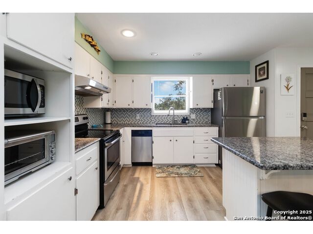 A low-maintenance, move-in-ready Canyon Lake home built for easy living. This updated single-story features a bright open layout, modern flooring, upgraded blinds, and one of the most important improvements a hill-country home can offer: a 2024 aerobic septic system-a $30K+ value rarely found in this price range. Perfect for downsizers, weekenders, or full-time residents wanting function and comfort, the home includes a flexible converted garage space ideal for a workshop, media room, home office, or hobby studio. Outside, the lot offers room for a boat, RV, or trailer-plus quick access to the lake and local amenities. The kitchen and interior upgrades give the home a modern feel while preserving the laid-back charm of the community. Fully furnished for convenience, the home can easily shift between full-time living and occasional hosting. If you've been searching for a single-story home with updates, storage, room for toys, and no major projects-this one checks all the boxes. Furnishings convey with acceptable offer. Community amenities include a swimming pool, clubhouse, playground, and nearby boat dock. Best of all, the property qualifies for Zero Down USDA financing-an exceptional value for Canyon Lake living. Whether you're seeking a serene Hill Country escape or an income-producing investment, this versatile home is a rare find.