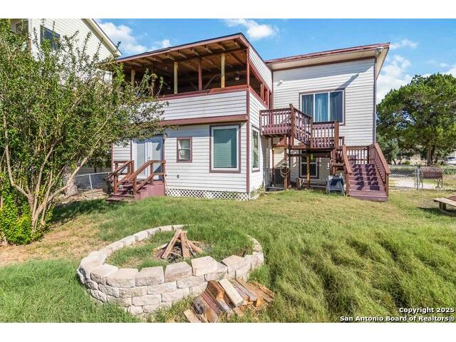 Wake up to sweeping lake views from one of the most scenic vantage points in the neighborhood. This updated 3-bedroom, 3-bath home is designed for indoor-outdoor living with two levels of covered patios, a screened porch, and multiple spaces to relax, entertain, or host family and friends. Recent updates-including a refreshed kitchen, remodeled baths, flooring, lighting, fixtures, and dual water heaters-create a bright, modern feel while preserving the charm of a hill-country home with character. The layout offers privacy for guests, multigenerational living, or remote work, with both upstairs and downstairs living zones. Perfect as a primary residence or a lock-and-leave weekend retreat, the home's elevated position and outdoor living spaces make it a rare find at this price point. Furnishings may convey for turnkey convenience with acceptable offer. For buyers who want the view, the decks, and a lifestyle home that feels like a second chapter waiting to unfold-this one delivers. Gravel front yard = low maintenance and a fenced back yard. All this, just a short walk to the lake! Eligible for Zero Down USDA financing. Don't miss your chance to own a serene Hill Country retreat with income potential!