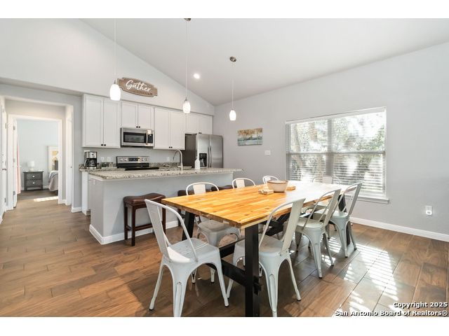 Charming single story hill-country home just steps from the lake and neighborhood amenities-perfect for buyers who want to live the lifestyle, not just visit it. This 3-bedroom home offers an open layout, abundant natural light, and modern systems including a 2024 HVAC for long-term peace of mind. The layout is ideal for singles, couples, young families, remote workers, or downsizers seeking simplicity without sacrificing comfort. The detached flex studio makes an excellent office, hobby space, workout room, or teen retreat. A covered deck and easy-care yard make outdoor living effortless. While currently furnished as a turnkey short-term rental, the home transitions beautifully into a primary residence with its practical floor plan, manageable size, and quiet location. Furnishings can convey to create a seamless move-in experience if preferred. This is the home for the buyer who wants newer construction, low maintenance, and the ability to walk to the water in minutes. All furniture conveys with an acceptable offer, and the property qualifies for Zero Down USDA financing-an exceptional value.