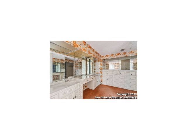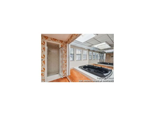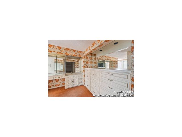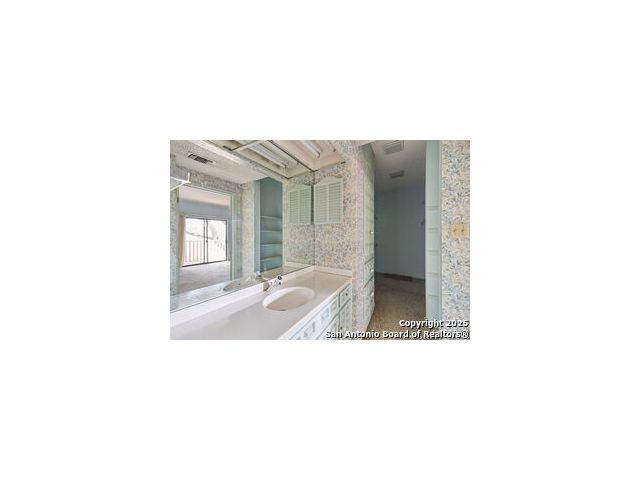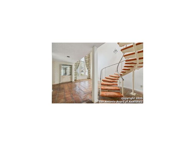 So many features, so little price! For the first time in 50 years, the largest townhouse in the complex is up for grabs. Don't be fooled by its modest exterior--this one has main-character energy. Step inside and you'll find a true residence, complete with a private backyard pool, detached studio apartment, pool cabana (with a full bath). A retro-lover's dream, this 1970s time capsule comes with a show-stopping circular staircase and 19-ft ceilings in the living room. The separate family room, with its asymmetrical fireplace, overlooks the pool. All bedrooms are upstairs, each with its own ensuite bath. The primary suite steals the show with a fireplace, wet bar, and a spa-worthy bath featuring a sauna, double vanity, walk-in closet, shower, and a soaking tub room (yes, a whole room). A back staircase connects to the butler's pantry (I dare you to fill it!), two car attached garage, laundry room, and groovy original kitchen. The ground floor also houses a formal dining room, wet bar, and half bath. The discrete back yard centers on the newly resurfaced pool, shaded patio, and a rare detached structure: a pool cabana with full bath downstairs and a lofted studio apartment upstairs (each 495 sq ft). Easily park in the attached garage or the unit's private circular drive. Walk one block to Lincoln Heights (H-E-B, St. Bernard, and top restaurants) plus quick access to Broadway, 281, and 410. A true Alamo Heights gem with retro charm and all the perks of '09 living. Don't miss it!