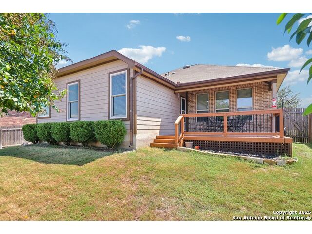 Welcome to this well-maintained 3-bed, 2-bath home featuring a rare 3-car garage with an extra-wide driveway. Inside, enjoy gas cooking with stainless steel appliances, tray ceilings in the foyer, and a vaulted primary suite. The primary bath includes a handicap-accessible walk-in shower with a bench, while a bay window enhances the secondary bedroom. Unique garden windows in the kitchen bring in natural light, complementing the open-concept layout that flows seamlessly to an extended wood deck and spacious side yard-perfect for relaxing or entertaining. With quick access to I-35, this home is truly move-in ready!