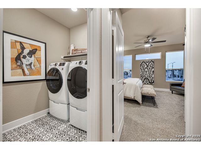 Move in Ready! Step into comfort and convenience with this beautifully designed home, featuring tile flooring throughout the common areas for a clean, modern look and easy maintenance. The heart of the home opens up to a covered patio, perfect for relaxing. Upstairs, you'll find all bedrooms thoughtfully situated around a spacious loft area-ideal for a second living space, home office, or playroom. The primary suite is a true retreat, boasting separate vanities, a walk-in closet, and a luxurious shower with floor-to-ceiling tile. Additional features include walk-in closets and an upstairs laundry room for added convenience. Blending functionality with elevated design, this home is perfect for modern living.