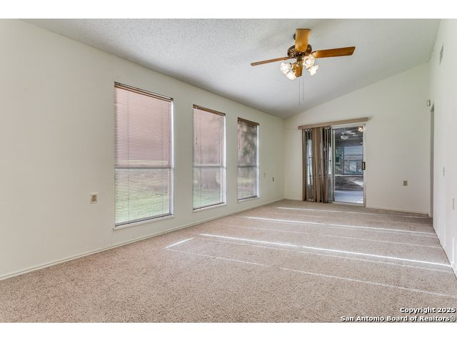 Welcome to Scenic Hills 55+ Community in Schertz, Texas. This senior community has a lot to offer its residents. This property has a large living/dinning room area that lends itself for family gatherings and entertainment. It has a split-floor plan with 2 bedrooms, and 2 full bath. The large room adjacent to the patio can serve as a game room or Florida room. The covered patio is a great place to have morning coffee or social time. Carpet in living area, bedrooms, and family room. Tile in the bathrooms and covered patio area. Kitchen and main entry have linoleum flooring. One built-in fireplace in the living room. The walk-in closets have adequate space. The kitchen has two pantry areas and a built in desk. The community offers lots of amenities to its residents, for example, a 13,000 square foot club house, for such activities as: Billiard, craft room, card room, library, shuffle board, outdoor pool, social events and more. Make this property your forever home!