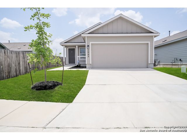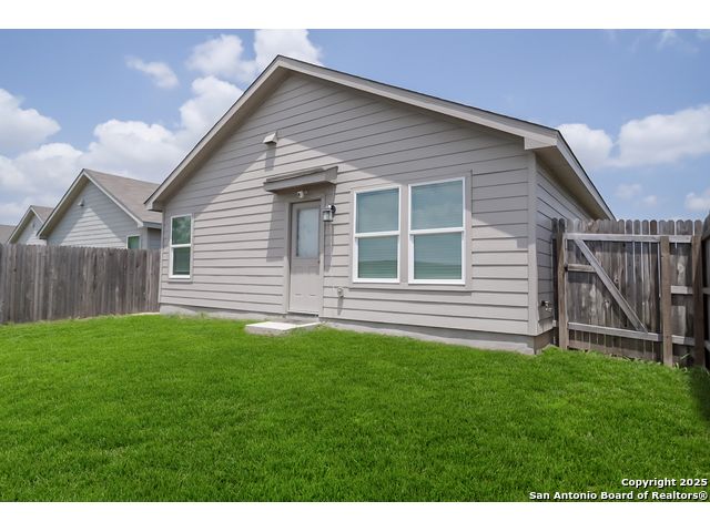 Schedule your today for this opportunity to own a 3-year old home in a gas community, with over 1600 sqft, near Lackland AFB. The community also has a brand-new pool and playground. This like-new home with 4 bedrooms and two full baths, flush-mount lighting, and separated primary bedroom, provides features for your household's comfort, including: a two-car garage, central AC and heat, walk-in closet, ring security devices, a double-door fridge, washer and dryer, dishwasher, an instant water heater, and the benefits of even-heat cooking on your gas stove. Lawn maintenance is minimal, access in and out of the community is quick and easy, and shops/restaurants are less than a mile away. A video walkthrough of the property is online, and the home is available to show today!