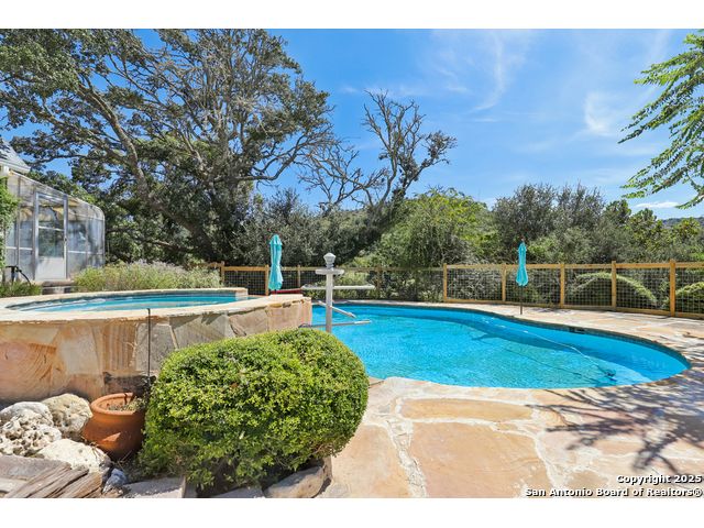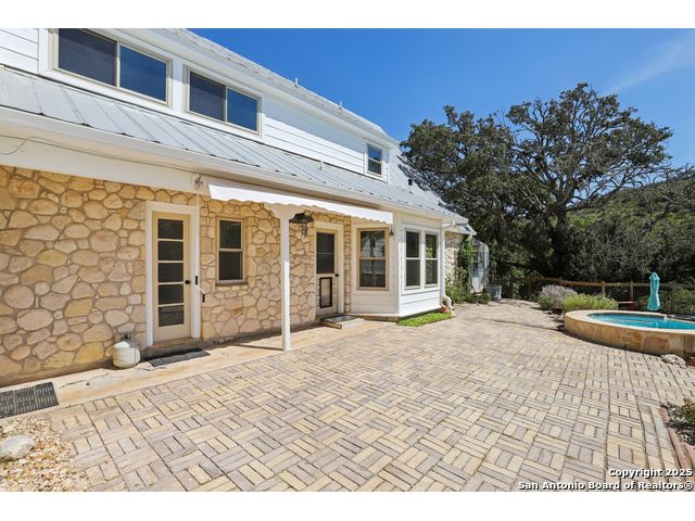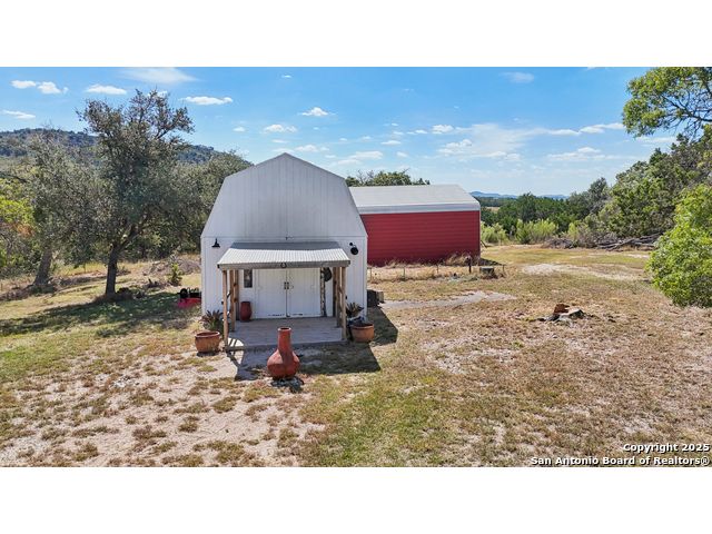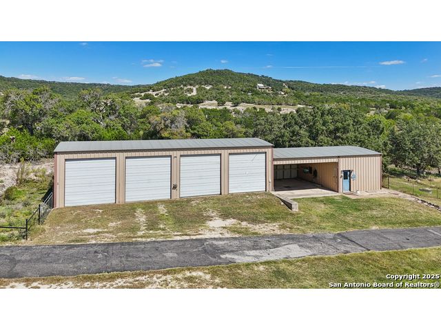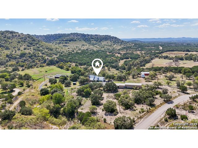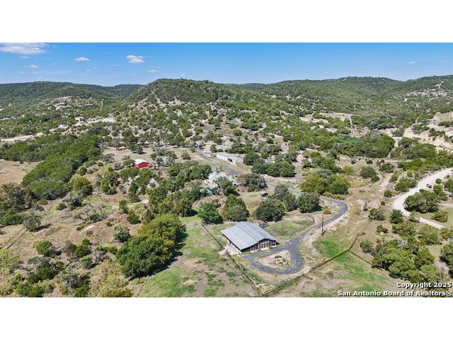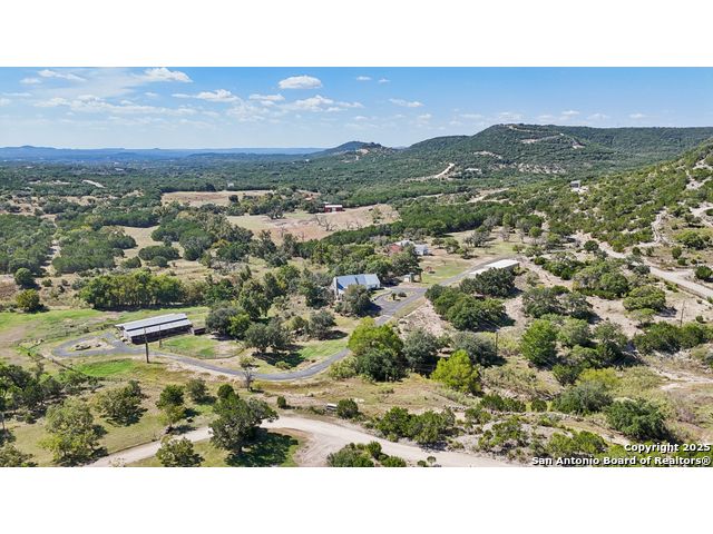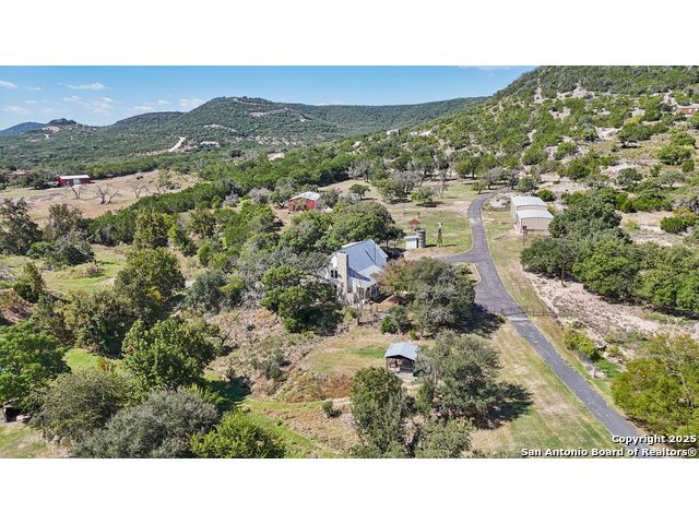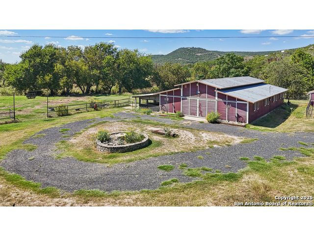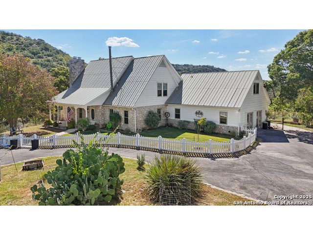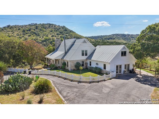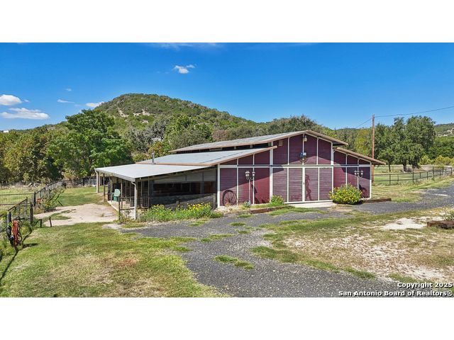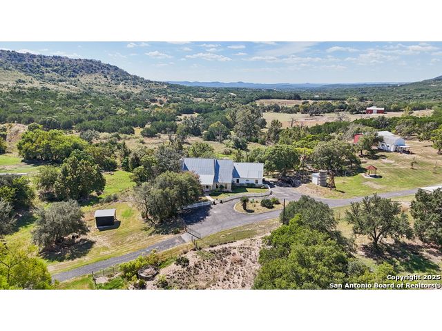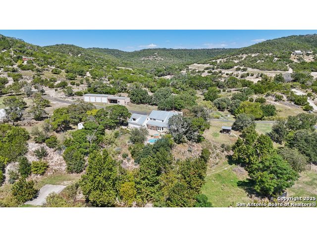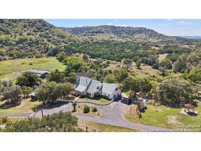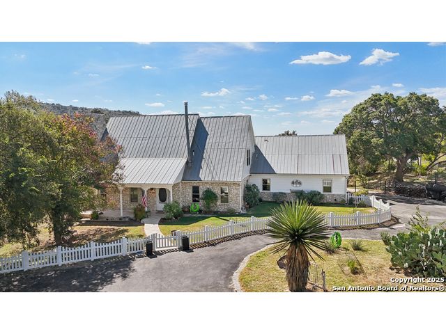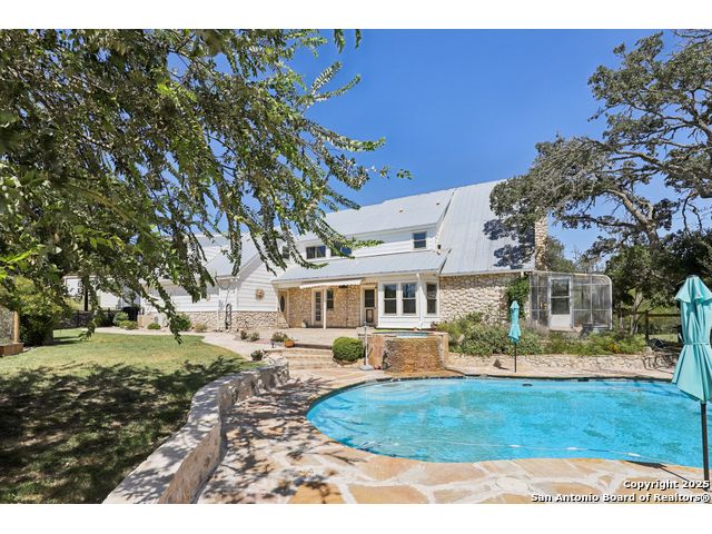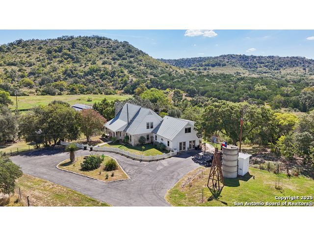 WOW! Custom Hill Country Retreat with Pool, 4-Car Workshop & Stables on 17.58 Acres! Experience resort-style living in this 4 Bed / 4 Bath, 2,452 sq ft custom home, perfectly perched to capture sweeping Hill Country views in desirable Pipe Creek. Step inside to discover unique 'Country Charming' designer touches, hardwood & tile floors, fresh paint throughout, and a turn-key, move-in ready interior. The spacious great room showcases abundant natural light and a beautiful stone fireplace, flowing effortlessly into the formal dining area, greenhouse and chef's kitchen-complete with vintage-inspired appliances and a cozy breakfast nook. The first-floor primary suite features an oversized walk-in closet, full bath, and direct backyard access. Upstairs, you'll find two additional bedrooms, a full bath, plus a private guest suite with kitchen and bath-perfect for extended family or guests. Outdoors, unwind or entertain in your very own 'Southern Living' style oasis featuring a sparkling pool & hot tub, expansive patio, Pitmaster BBQ grill, and a Game Room/Bar-all set against stunning Hill Country vistas. Additional property highlights include a 4-car detached workshop/garage w/ private office & bathroom, 12-stall barn, shed, covered carport, chicken coop, aviary, dog run, room for your RV and so much more! Enjoy peaceful country living with modern convenience-just minutes from San Antonio, Medina Lake, local dining, live music at Floore's Country Store, and easy access to 1604/I-10. A true Hill Country gem-this one has it all!