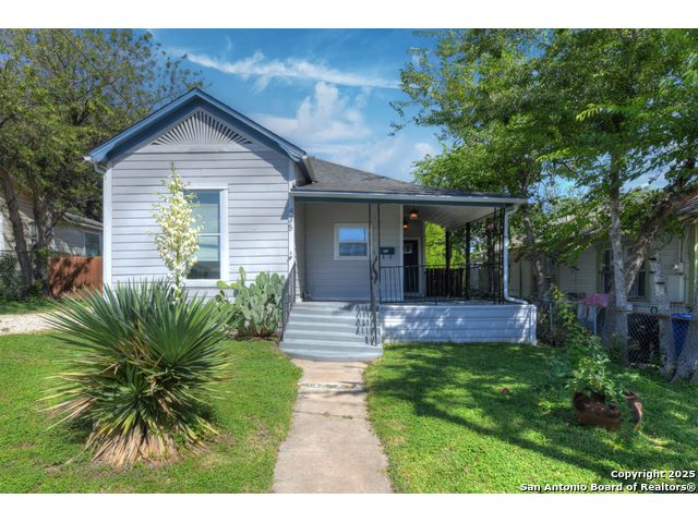 Talk about a great location... here it is. 1.6 miles from the AT&T Center, 3 miles from Downtown, The Pearl and many more San Antonio attractions. This is a home originally built in 1930 but has an updated interior with all the modern conveniences and styles. All new within 4 years; flooring, kitchen remodel, AC, roof, appliances. Within the last 2 years; foundation repair, covered gazebo, garden paths. It's currently set up as a 2 bedroom, 2 bath, with living and dining room but the space could definitely be arranged to accommodate an additional bedroom. Unexpected backyard treats are the mature fruiting trees including pomegranate, pear, peach, apricot, olive, blackberry, fig and mulberry. Covered gazebo in the backyard is private and makes it perfect for entertaining with family and friends. Perfect starter or great investment home opportunity with rental/Airbnb potential.