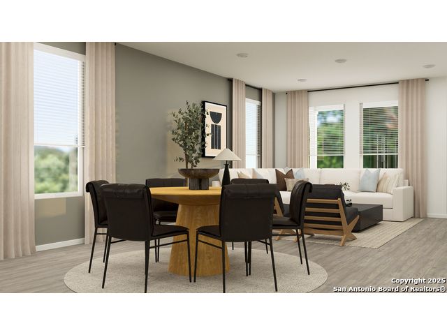 The Santo floorplan is a two-story home with 5 bedrooms, 3 bathrooms and a 2-car garage. Features include dining room, living room and primary bedroom downstairs. Prices and features may vary and are subject to change. Photos are for illustrative purposes only.