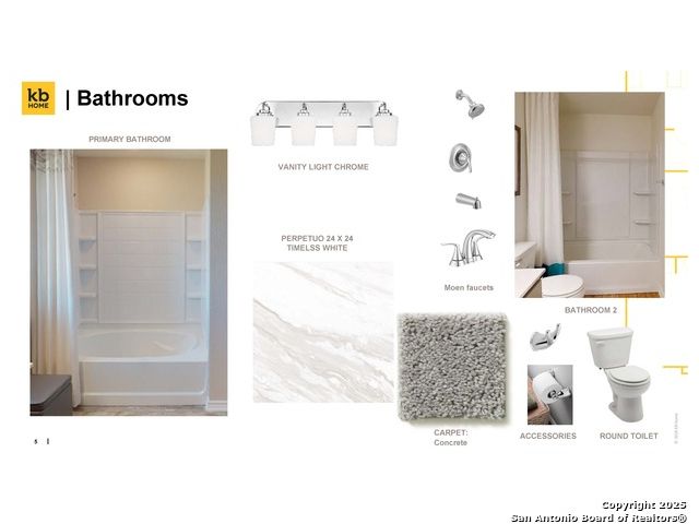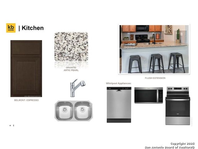 This stylish home features 9-ft. first floor ceilings that enhance its spacious feel. The kitchen showcases Whirlpool stainless steel appliances, Woodmont Belmont 42-in. upper cabinets, granite countertops in Arctic Pearl, and an extended breakfast bar. In the primary bath, enjoy upgraded cabinets, and a 42-in. garden tub/shower with a Daltile tile surround. Decorative touches include a Carrara-style entry door, Kwikset Polo knob interior hardware, and Perpetuo ceramic tile flooring throughout the bathrooms, kitchen, and great room. A wireless security system adds peace of mind, while a fully sodded yard and automatic sprinkler system offer outdoor ease.