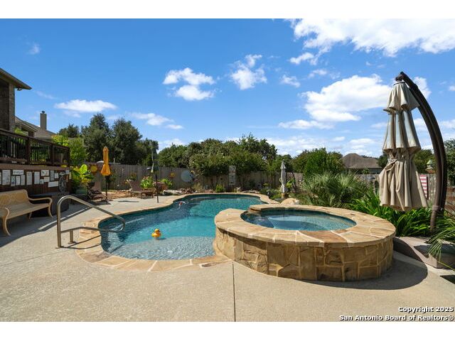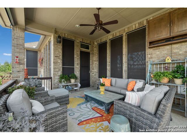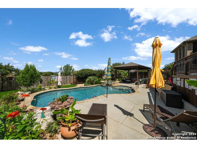Welcome to 29035 Porch Swing - where "dream home" isn't just a saying, it's a daily experience. Built by the renowned Highland Homes, this 3,108 sq. ft. single-story masterpiece sits gracefully on a 1/4-acre lot in the prestigious Balcones Creek Ranch community - where neighbors wave, kids play, and every sunset looks like it was made for a postcard. Step inside and you'll find the kind of craftsmanship that never goes out of style - wood floors that actually feel like wood, four-sided masonry, and a flowing open layout that says, "come in, stay awhile." The 20x20 family room centers around a cozy fireplace (perfect for winter movie nights), while the formal dining room sets the stage for gatherings that start with laughter and end with dessert no one regrets. The gourmet kitchen? It's a showstopper - white cabinetry, gleaming granite counters, built-in stainless appliances, and a sun-drenched breakfast nook that practically demands morning coffee and good conversation. Need flexibility? You've got it - with a dedicated study, game room, and playroom, this home adapts to every season of life. The private owner's suite is your sanctuary - complete with dual vanities, a spacious walk-in shower, and just enough room to make "spa day" a regular occurrence. Outside your door, Balcones Creek Ranch delivers the Hill Country lifestyle everyone talks about - a resort-style pool, clubhouse, trails, sports courts, and a community that feels like family, all within the award-winning Boerne ISD. Beautiful. Functional. Effortlessly welcoming. This is 29035 Porch Swing - where Texas luxury comes with a front-porch view and a wink of personality.