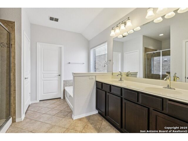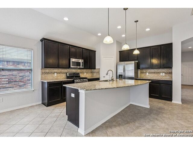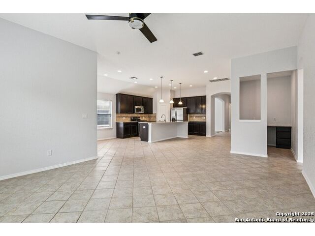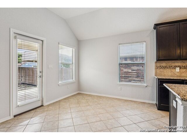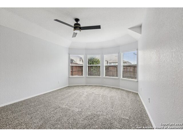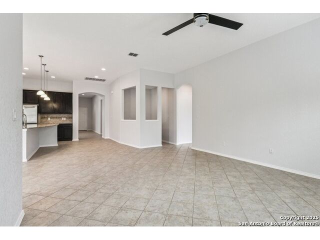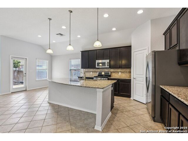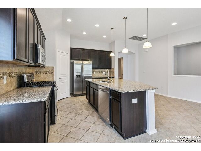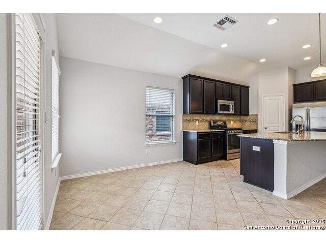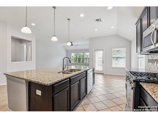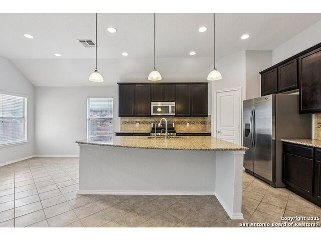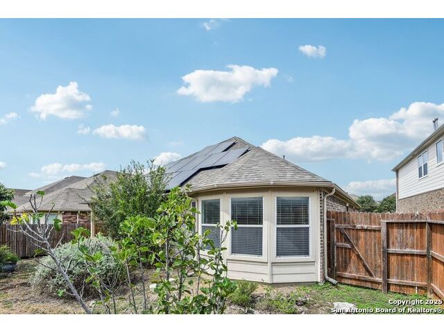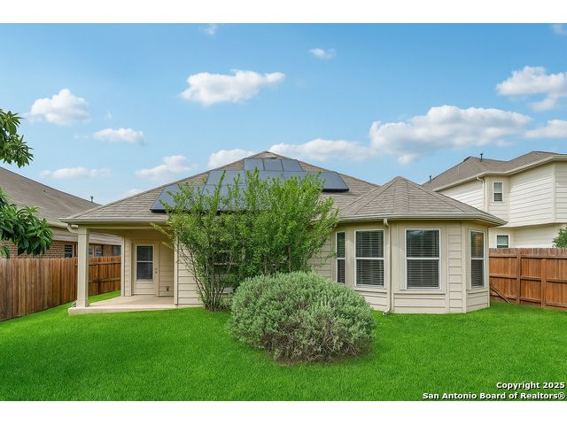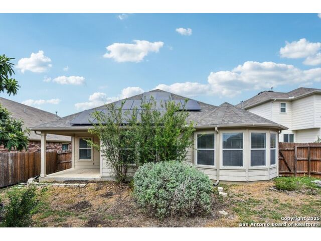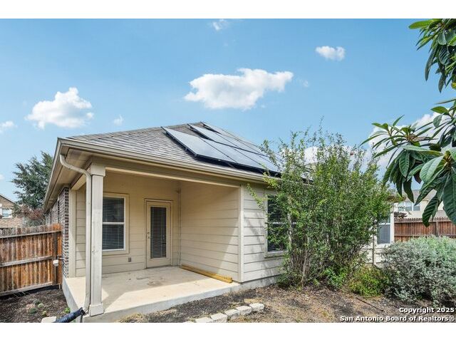 Welcome to 12714 Gruene Pass, a beautifully maintained single-story residence located in the highly sought-after Alamo Ranch community in San Antonio, TX. This 3-bedroom, 2-bathroom home offers thoughtfully designed living spaces, modern updates, and energy-efficient upgrades - all on a quiet, tree-lined street with excellent community amenities. From the moment you arrive, you'll notice the curb appeal created by a brick exterior, mature landscaping, and a covered front entry. Inside, the home features fresh interior paint (2025) and new carpeting in all bedrooms (2025), offering a clean and neutral backdrop ready for personalization. The open-concept kitchen is designed for both function and style, showcasing granite countertops, gas cooking, stainless steel appliances, and a large center island ideal for meal preparation or casual dining. Adjacent to the kitchen, a built-in granite workspace creates a flexible area for remote work, organization, or homework. The spacious primary suite includes a bay window for added natural light, and an en-suite bath with dual sinks, a soaking tub, separate shower, and a large walk-in closet. Two additional bedrooms are generously sized with easy access to a full secondary bath. Notable mechanical updates include a brand-new roof (2025), new HVAC system (2024), and an updated water heater, providing peace of mind for years to come. Additionally, this home is equipped with paid-off solar panels, offering sustainable energy savings with no lease or payment obligations. Step outside to a covered patio and a privacy-fenced backyard, ideal for outdoor enjoyment and low-maintenance living. A full sprinkler system is also included. Located within the vibrant Alamo Ranch master-planned community, residents enjoy access to a community pool, clubhouse, walking trails, park and playground, and sports courts. The home offers easy access to Loop 1604, with nearby shopping, dining, and schools. Its location also supports a convenient commute to Lackland Air Force Base. This move-in ready property combines modern efficiency with everyday comfort - a rare opportunity in one of San Antonio's most popular neighborhoods.