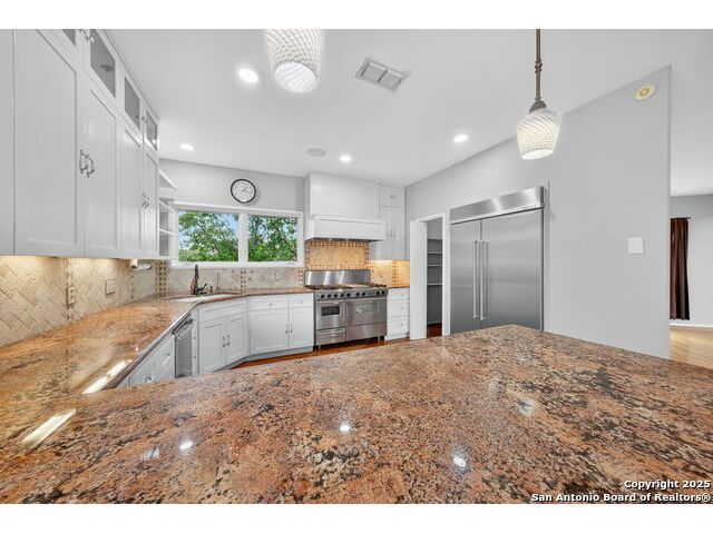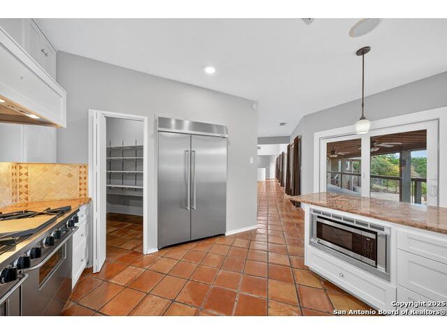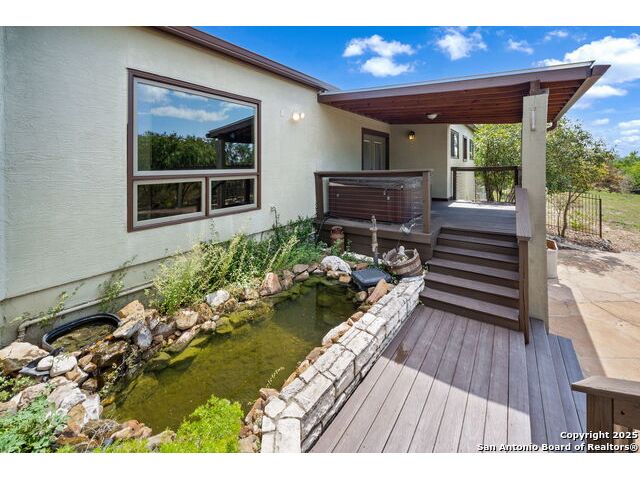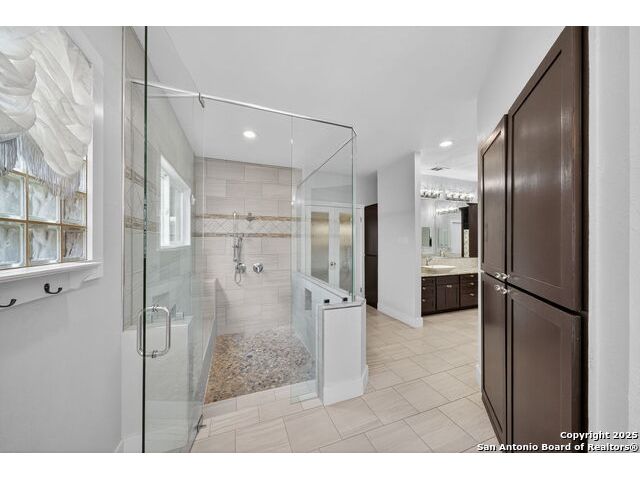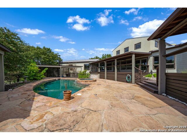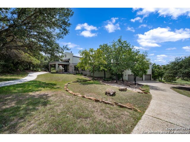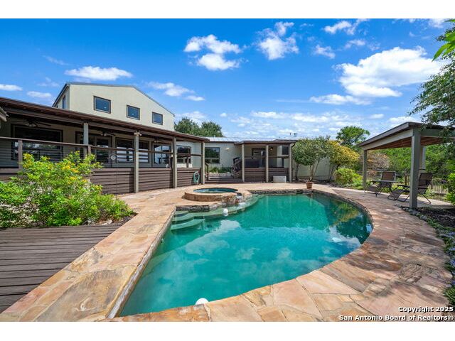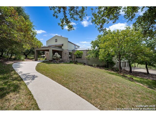 Luxury horse-friendly Hill Country estate with pickleball court & pool, nestled at the end of a private cul-de-sac on 2.73 acres. Offering 4,376 sq ft of living space, this one-level home is thoughtfully designed with all 4 bedrooms and 3 full baths on the main level, providing ease of access and seamless flow. A gourmet kitchen with six-burner propane stove, walk-in pantry, and breakfast bar opens to an expansive living room anchored by a double-sided fireplace. Premium appliances and abundant natural light enhance this home's inviting style. The lower level features a spacious mudroom, dedicated laundry area and 3-car garage with backyard access, for added convenience. Outdoors, relax by the pool and spa with a flagstone terrace and wrought iron fencing, or enjoy a match on your private pickleball court. Fully fenced and cross-fenced, the property offers open pastures, wooded areas, and access to 13 miles of neighborhood bridle paths, parks and playgrounds-perfect for horse enthusiasts, hikers, cyclists, etc. Backing to a greenbelt with mature trees, this estate blends privacy and tranquility with urban convenience, just minutes from shopping, dining, Six Flags, and the Fair Oaks Ranch Golf & Country Club. Zoned to highly rated Boerne ISD, this estate delivers the perfect balance of elegance, recreation, and country charm in the heart of the Texas Hill Country.