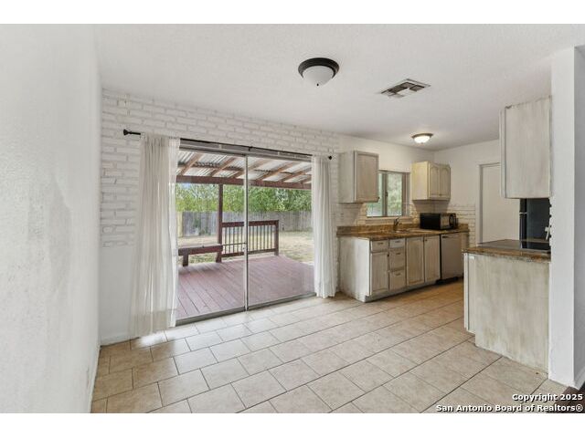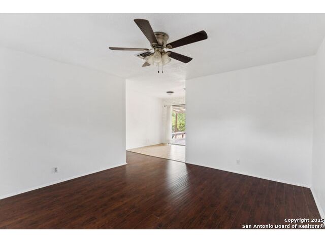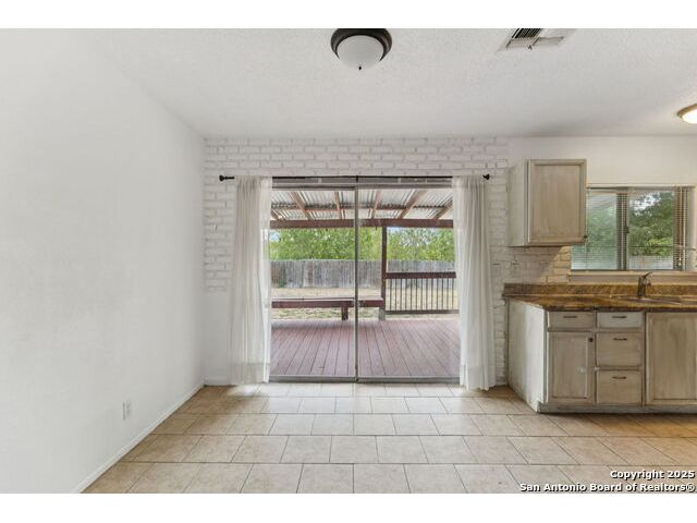 Charming Single-Story Home with Endless Potential! Welcome to this inviting single-story home featuring a spacious layout and great yard space both back and front! Step inside to find fresh neutral paint, rich wood-look flooring in the main living area, and large windows that fill the space with natural light. The open-concept layout seamlessly connects the living room to the dining area and kitchen, offering an ideal space for both relaxing and entertaining. The kitchen boasts granite countertops, rustic look cabinet space, and your main appliances - perfect for preparing family meals. Enjoy easy access to the backyard through sliding glass doors, where you'll find a large covered patio and a private, fenced yard ready for your personal touch. Additional highlights include a two-car garage, ceiling fans, and move-in-ready finishes. Enjoy the convenience of living just moments from Windcrest City Park and Takas Park, offering playgrounds, walking trails, sports courts, and pavilions-perfect for outdoor fun with family and friends. Golf enthusiasts will love being near Windcrest Golf Club, while daily errands are a breeze with HEB, shopping centers, and multiple dining options all within half a mile, making this location ideal for an active and connected lifestyle! this home is perfect for first-time buyers, investors, or anyone looking to customize a property to their liking. Don't miss your chance to own this wonderful home - schedule your showing today!