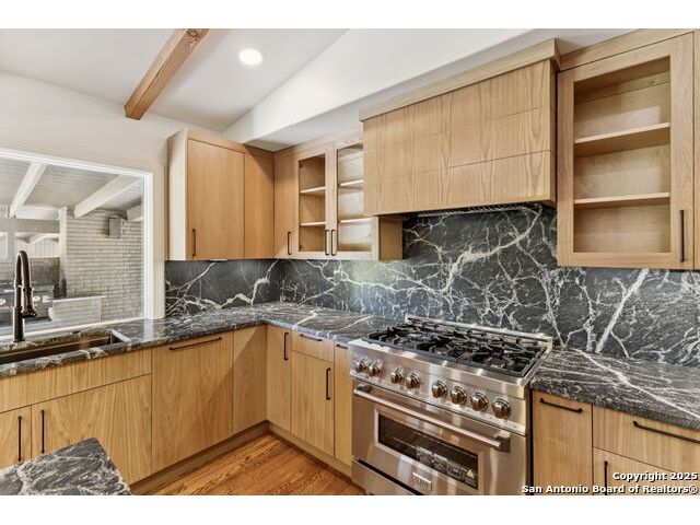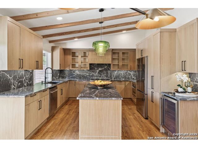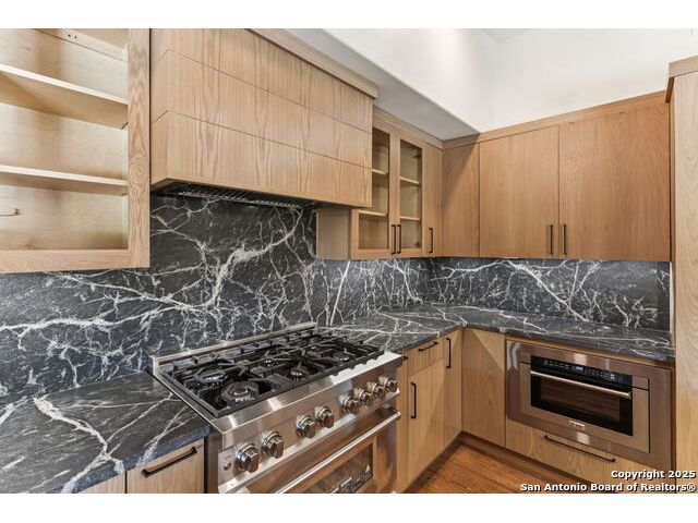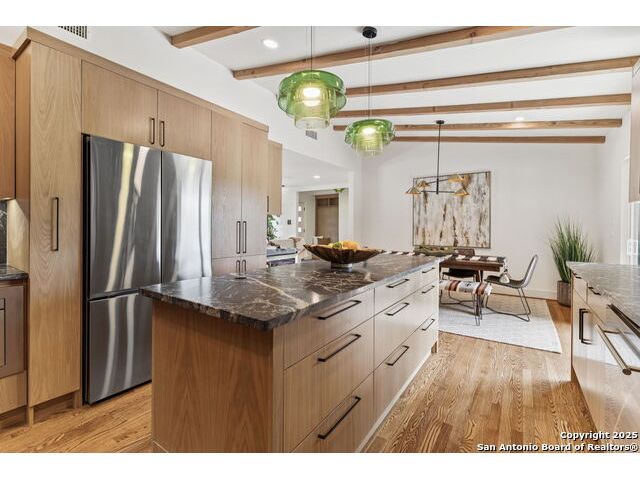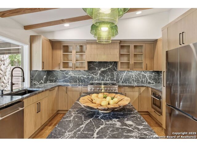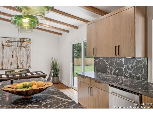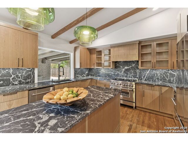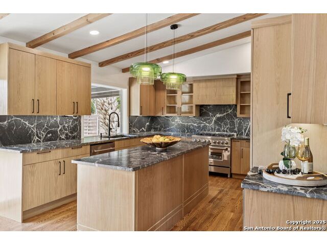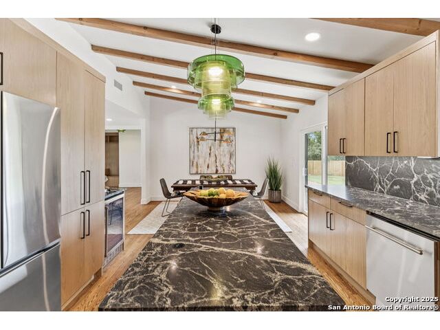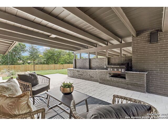 Stunning one-story residence in Terrell Hills, completely taken down to the studs and fully renovated in 2025. Combining classic ranch-style charm with modern luxury, this thoughtfully designed home offers four spacious bedrooms and three full baths, ideal for families, guests, or flexible living arrangements. Set on a generous .38-acre lot, the property features an expansive yard with a new irrigation system, fresh sod, and secure fencing for both privacy and outdoor enjoyment. A covered two-car carport provides convenient and protected parking, while an electric wrought iron gate enhances both curb appeal and security with remote-controlled access. Inside, the home showcases refined upgrades throughout. Natural tile selections provide timeless style and durability, while custom cabinetry pairs beautifully with professional-grade Italian ZLINE appliances, bringing function and elegance to the heart of the home. A tankless water heater ensures efficient, endless hot water for modern living. For those who love to entertain, the unique covered outdoor barbecue area is a true highlight-perfect for alfresco dining and gatherings. This exceptional property blends timeless design and upscale finishes in one of San Antonio's most desirable enclaves, offering an unmatched lifestyle in coveted Terrell Hills.