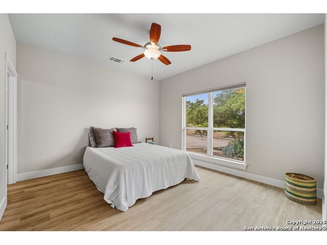 A rare property only 7 minutes to downtown Boerne, 128 Skylight Trail offers amazing views for miles. Situated on 41.48 private acres enjoying Wildlife Management exemption and a rainwater catchment system + backup well, access to the home is via a gated and paved driveway. The transitional Main home (c.2017)features 2 Bedrooms plus a flexible office, great room w/gas fireplace and open Kitchen w/custom cabinets opening to a deep covered patio to enjoy the amazing views. There is a connected apartment perfect for multi-generational living with separate entrance which offers living room, kitchen and separate bedroom. To service the home there is an oversized 2 car garage w/large climate controlled storage room plus a detached 1 car carport. The acreage is perfect for hiking, birding, light hunting and traversing...multiple vantage points are situated to take advantage of the miles and miles of Texas views. There are multiple ravines perfect for the adventurer who likes to explore...a wet weather pond could be renovated to hold water year around if desired. The gardening opportunities are immense here, from Native gardening to other types. This is the perfect spot for your country lifestyle in a close, convenient location with amazing views. Room for pool, barns, also! Award-winning Boerne Schools, Shopping & Restaurants are nearby! Taxes are not reflected accurately in our MLS system; consult tax record for proper tax disclosure.