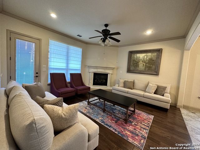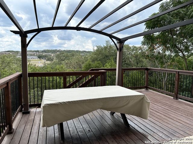 Beautiful two story home with high ceilings and natural light that offers 5 spacious bedrooms with walking cossets and 3.5 baths, a home office, large Game Room plus a Media Room to entertain your guest with a very nice view to the countryside in the Greenbell back Yard. Nice kitchen that comes with a Granite Island and tall countertops, refrigerator , gas cooking stove, Oven, large Master bath with Separate shower and bath and doble vanities. 2 car garage with space for storage, an Outdoor grill that backs the protected Greenbell with beautifull view with lots of trees, 2 decks and much Moore. Easy acces to I-10, minutes from Boerne downtown and just few miles from La Cantera Shooping area.