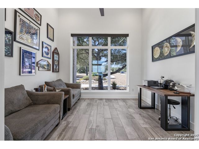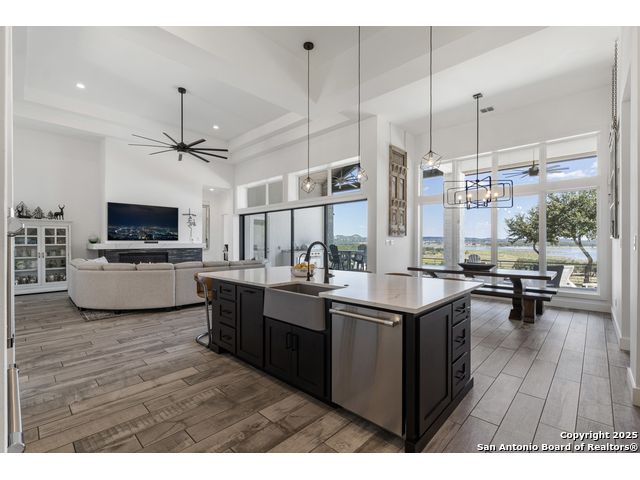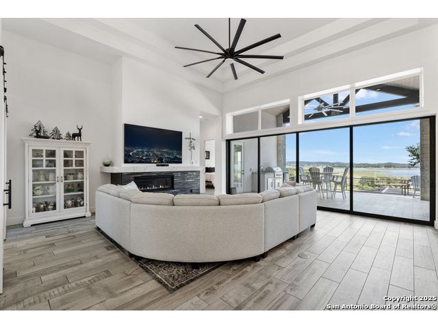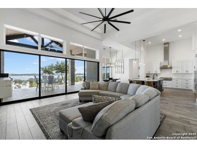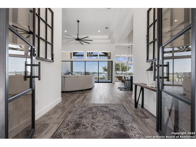 Wake up to breathtaking panoramic views of Canyon Lake in this stunning 2 home estate. Nestled on 1.46 acres, the main home offers 2859sf with 4 spacious bedrooms, 3.5 baths, a study, and an open-concept living space that flows seamlessly to the sprawling patio and outdoor kitchen -perfect for entertaining or relaxing in style. The chef's kitchen features Thermador appliances, a large island, gas cooktop, and abundant counter space, making it the heart of the home. Expansive sliding glass doors retract to bring the outdoors in, showcasing Canyon Lake and the 28 acre nature preserve vistas at every turn. Retreat to the spacious master suite, complete with walk-in closet and a spa-like bath with a freestanding garden tub, oversized walk-through tiled shower, and dual vanities. A versatile fourth room can serve as a game room or flex space, while a dedicated study provides the perfect spot for work or reading. The oversized 3-car garage features 10-foot roll-up doors, epoxy flooring, a mini-split system, and ample space for automotive projects or a home gym. The property also includes a 2,842 sq ft casita with 3 bedrooms, 3.5 baths, a full kitchen, and laundry-ideal as a guest house, an airplane hanger, a versatile space for a classic car collection, hobby garage, workshop, gym, or flexible living space. The casita is conveniently located near the Canyon Lake Airport airstrip without compromising privacy, and the adjacent parking area doubles as a pickleball court. Luxury features abound including foam insulation, a 24kW Generac generator, whole-house water filtration/softener, programmable exterior LED trim lighting, This is more than a home-it's a lakefront lifestyle blending modern elegance, entertainment-ready spaces, and spectacular views in one of Canyon Lake's most coveted locations.