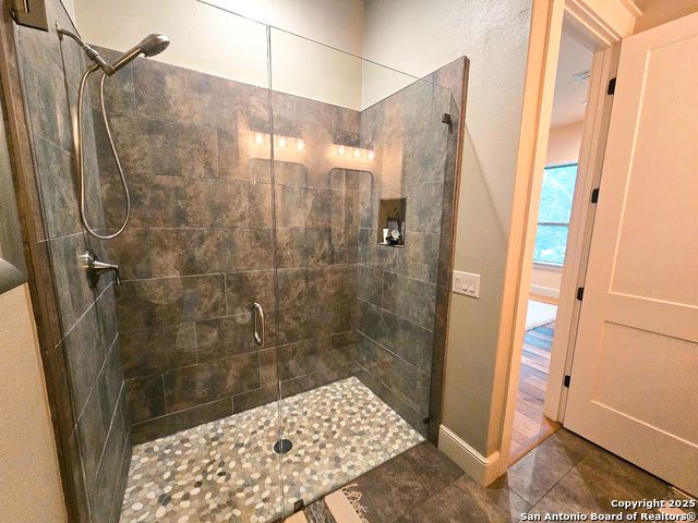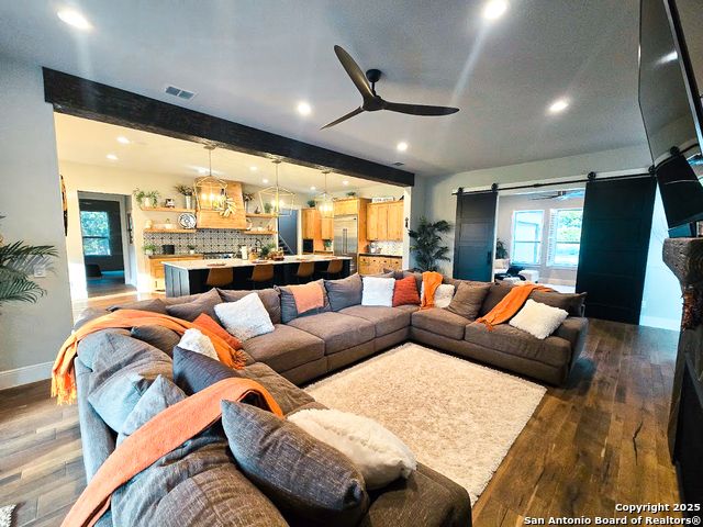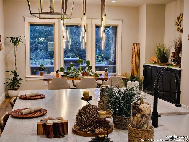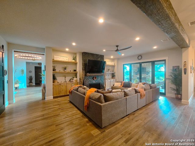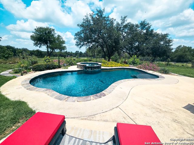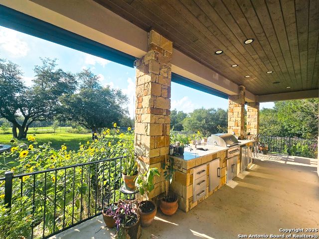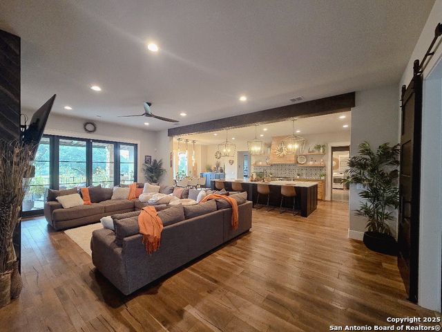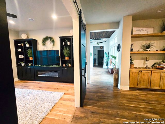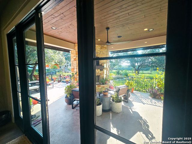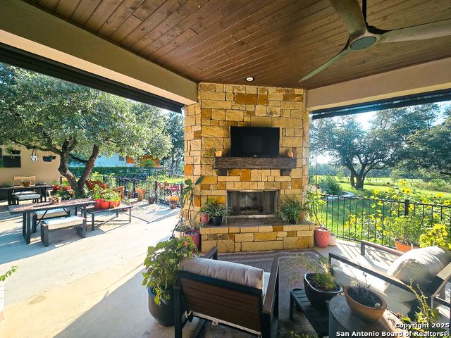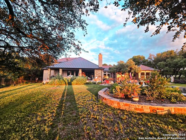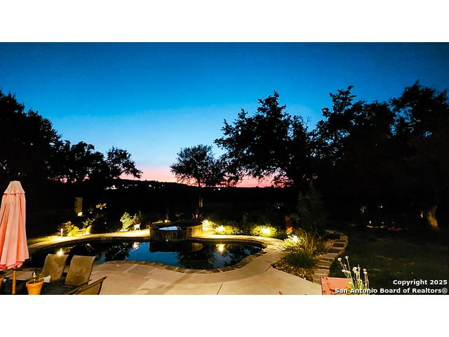 PRICE IMPROVEMENT! MOTIVATED SELLER! Situated on the 8th hole of the private River Crossing Golf Course and only five doors down from the Club, this magical high-end, resort-style property is one that you will never want to leave. The energetically glowing 5,187-sq foot 5 bed/5.5 bath luxury home is centered on 1.02 acres filled with oak trees, fruit trees, flowers and wildlife. The oversized windows allow natural light to flow in and offer perfect daily views of the sunrise/moonrise due east, the sunset/moonset due west over the hill, the wildlife that roam the property, and the planetarium-like night sky. The backyard features over 2,000 square feet of patio space/sundeck overlooking a 13k-gallon heated Gary pool+spa and equipped w/ a full outdoor kitchen, wood-burning fireplace, and courtyard w/ built-in firepit+TV. Just inside, a chef's dream kitchen anchors the spacious living space downstairs and features a 12-ft marble island w/ farm sink and stainless built-in Jenn-Aire appliances w/ concrete-poured perimeter countertops, pull-out storage, and custom knotty alderwood cabinetry. Wrapping the open kitchen+ living+ dining space is a pool bath; guest bedroom with en-suite; mudroom w/ lockers; oversized laundry room w/ quartz countertops+sink; a butler's pantry w/ a second full-size LG French-door fridge/freezer; a den/game room/office space w/ built-ins and modern electric fireplace privatized w/ dual barn doors; a front-facing executive office w/ glass French doors; and an oversized owner's suite. Regal hardwoods sprawl most of the downstairs alongside custom tile in wet areas. Inside the oversized owner's suite is a beautiful gas fireplace, a flex room that has been used as both a fitness room and second office/sunroom, dual closets that could fit full-sized mattresses in them, and a spa-level bath. The owner's bath has two sinks topped w/ marble countertops, a massive walk-in dual-head shower with sunset views, and a deep soaking tub with separate water closet. You could live exclusively downstairs if you wanted. Upstairs are three en-suite bedrooms and walk-in attic access. (Additional walk-up attic is located in left garage.) There's a 647 sq-ft 2-car garage on the left and 899 sq-foot 3-car garage on the right with a storage closet and wall-mounted TV+fans. Notable are the metal roof, spray foam insulation, whole-home gutters, three tankless water heaters, and (2022) oversized water softener (Simple 80k system) with whole house water filter. A 24kwh Generac was installed in November 2023 and there's a 500-gal buried propane tank to support the generator, water heaters, pool heater, gas stove, gas grill, and two indoor fireplaces. All fixtures/hardware/lighting updated in the past two years, as has the carpet on stairs/upstairs, and laminate in the den and downstairs guest bedroom. Smart home features include: * Ring Alarm system with wired Elite doorbell, 2 wired Elite cameras, 7 floodlight cameras, full door/window sensors, motion sensors, 4 keypads, and smoke/fire detection. * Aruba WiFi 6 mesh network with 6 wireless access points for full whole house coverage including garages, interior, and patio spaces * Chamberlain MyQ Smart Garage Door openers with battery backup (both garages) * Smart light switches * Structured wiring closet with battery backup system; CAT6 wiring throughout house. * 14-zone Rainbird Smart Irrigation system; entire lot coverage * Carrier Infinity smart, multi-speed, multi-zone heat pump with surge protection and Aprilaire whole home filter (right side) * Carrier smart heat pump with surge protection and Aprilaire whole home filter * Nuvo whole home audio with speakers in kitchen, game room, rear patio, master bath, exercise room, and garages. Additional wiring on rear of house for future speakers. * 3 full-length Dropshade rear patio motorized shades w/ smart hub controller via included remote and mobile app with scene control. * 400-amp electric