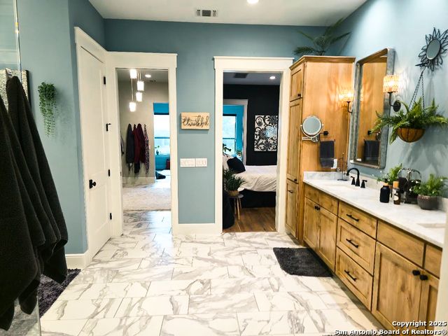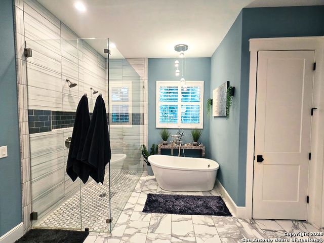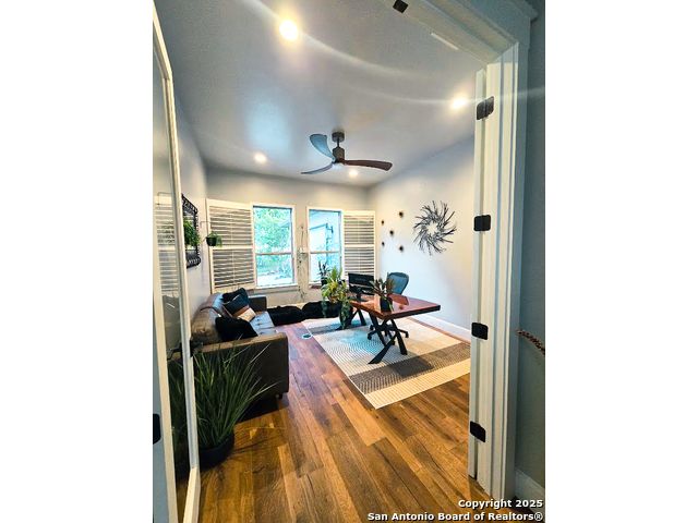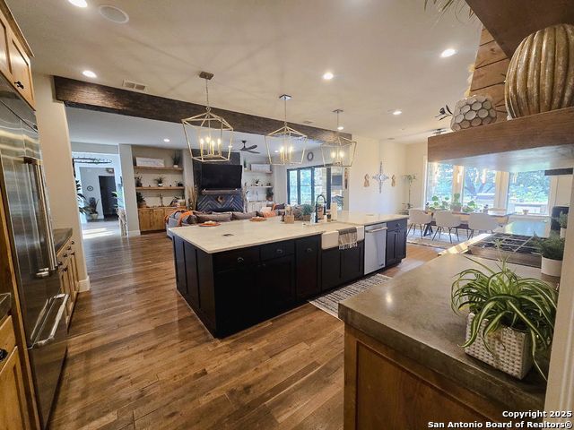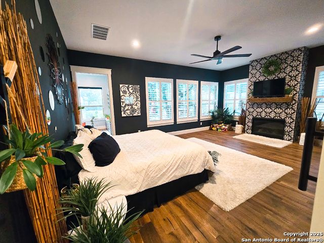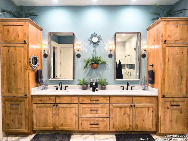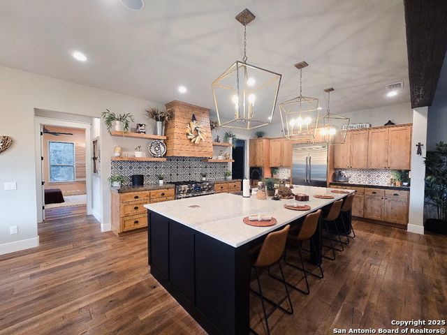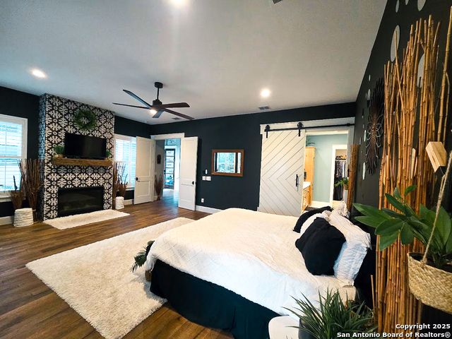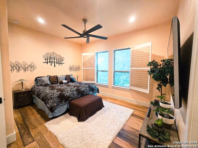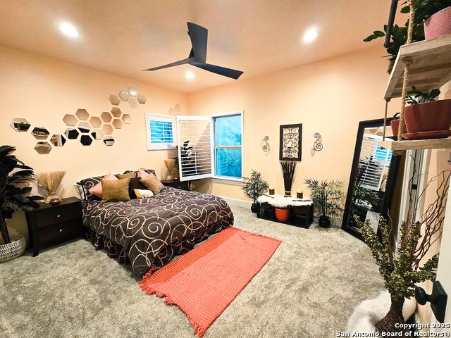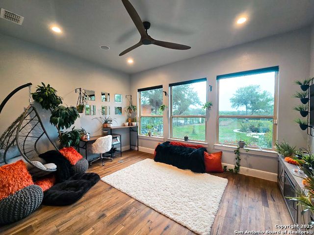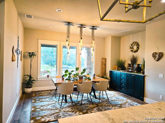 PRICE IMPROVEMENT! MOTIVATED SELLER! Situated on the 8th hole of the private River Crossing Golf Course and only five doors down from the Club, this magical high-end, resort-style property is one that you will never want to leave. The energetically glowing 5,187-sq foot 5 bed/5.5 bath luxury home is centered on 1.02 acres filled with oak trees, fruit trees, flowers and wildlife. The oversized windows allow natural light to flow in and offer perfect daily views of the sunrise/moonrise due east, the sunset/moonset due west over the hill, the wildlife that roam the property, and the planetarium-like night sky. The backyard features over 2,000 square feet of patio space/sundeck overlooking a 13k-gallon heated Gary pool+spa and equipped w/ a full outdoor kitchen, wood-burning fireplace, and courtyard w/ built-in firepit+TV. Just inside, a chef's dream kitchen anchors the spacious living space downstairs and features a 12-ft marble island w/ farm sink and stainless built-in Jenn-Aire appliances w/ concrete-poured perimeter countertops, pull-out storage, and custom knotty alderwood cabinetry. Wrapping the open kitchen+ living+ dining space is a pool bath; guest bedroom with en-suite; mudroom w/ lockers; oversized laundry room w/ quartz countertops+sink; a butler's pantry w/ a second full-size LG French-door fridge/freezer; a den/game room/office space w/ built-ins and modern electric fireplace privatized w/ dual barn doors; a front-facing executive office w/ glass French doors; and an oversized owner's suite. Regal hardwoods sprawl most of the downstairs alongside custom tile in wet areas. Inside the oversized owner's suite is a beautiful gas fireplace, a flex room that has been used as both a fitness room and second office/sunroom, dual closets that could fit full-sized mattresses in them, and a spa-level bath. The owner's bath has two sinks topped w/ marble countertops, a massive walk-in dual-head shower with sunset views, and a deep soaking tub with separate water closet. You could live exclusively downstairs if you wanted. Upstairs are three en-suite bedrooms and walk-in attic access. (Additional walk-up attic is located in left garage.) There's a 647 sq-ft 2-car garage on the left and 899 sq-foot 3-car garage on the right with a storage closet and wall-mounted TV+fans. Notable are the metal roof, spray foam insulation, whole-home gutters, three tankless water heaters, and (2022) oversized water softener (Simple 80k system) with whole house water filter. A 24kwh Generac was installed in November 2023 and there's a 500-gal buried propane tank to support the generator, water heaters, pool heater, gas stove, gas grill, and two indoor fireplaces. All fixtures/hardware/lighting updated in the past two years, as has the carpet on stairs/upstairs, and laminate in the den and downstairs guest bedroom. Smart home features include: * Ring Alarm system with wired Elite doorbell, 2 wired Elite cameras, 7 floodlight cameras, full door/window sensors, motion sensors, 4 keypads, and smoke/fire detection. * Aruba WiFi 6 mesh network with 6 wireless access points for full whole house coverage including garages, interior, and patio spaces * Chamberlain MyQ Smart Garage Door openers with battery backup (both garages) * Smart light switches * Structured wiring closet with battery backup system; CAT6 wiring throughout house. * 14-zone Rainbird Smart Irrigation system; entire lot coverage * Carrier Infinity smart, multi-speed, multi-zone heat pump with surge protection and Aprilaire whole home filter (right side) * Carrier smart heat pump with surge protection and Aprilaire whole home filter * Nuvo whole home audio with speakers in kitchen, game room, rear patio, master bath, exercise room, and garages. Additional wiring on rear of house for future speakers. * 3 full-length Dropshade rear patio motorized shades w/ smart hub controller via included remote and mobile app with scene control. * 400-amp electric