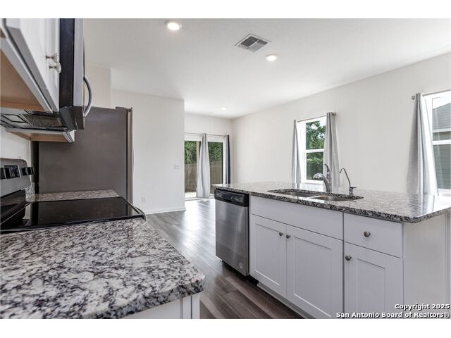 *Loan Assumption Available at a 5.5% rate* Backs to a greenbelt with no rear neighbors for added privacy. Bright, open living spaces flow seamlessly into a spacious kitchen featuring granite countertops, stainless steel appliances, and a dining area perfect for everyday living and effortless entertaining. The primary suite is set apart from the secondary bedrooms; a flexible layout suits work-from-home or guest needs. Enjoy a covered patio and fenced yard with peaceful treetop views. Fantastic location with quick access to Loop 1604 & FM 78, plus minutes to Randolph AFB, The Forum shopping/dining, H-E-B, and local parks/trails. Move-in ready and easy to show.