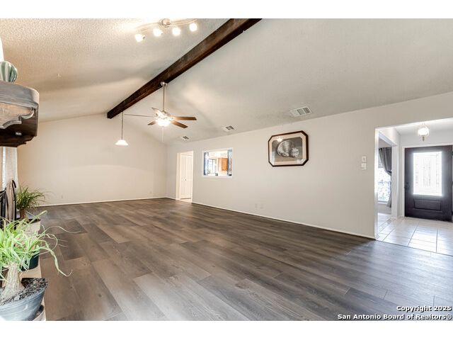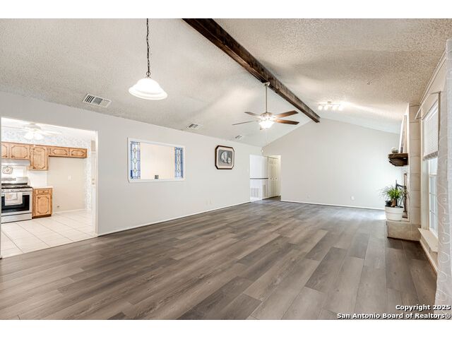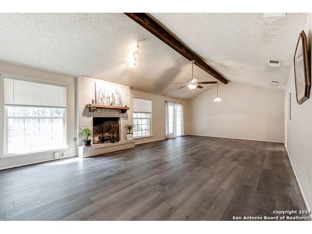 Step into this bright 3-bed, 2-bath rambler directly backing up to Comanche Lookout Park with personal trail access. A perfect spot to catch the sunset from the 1,300 ft peak you'll enjoy expansive views of the hill country and city all the way to the iconic Tower of the Americas downtown! The soaring great room, cozy fireplace, and covered deck make it perfect for everyday living or entertaining. Fresh flooring throughout, updated baths, and a spacious kitchen with built-in storage add modern touches. With no neighbors behind and quick access to shopping, the River Walk, and Austin, this home is ideal for first-time buyers or a smart rental investment. Schedule your showing today.