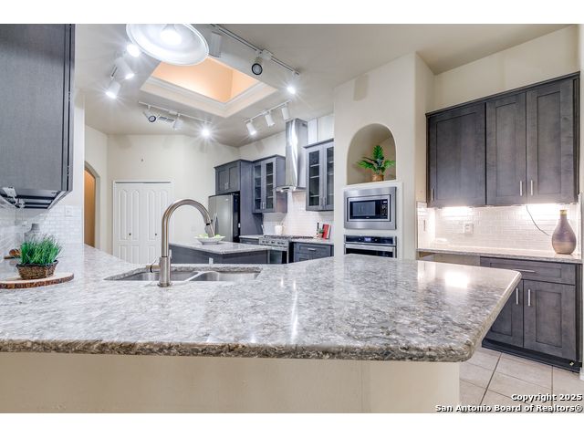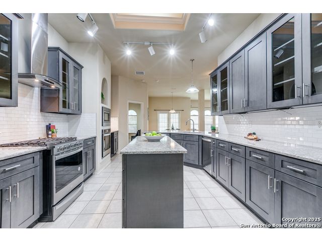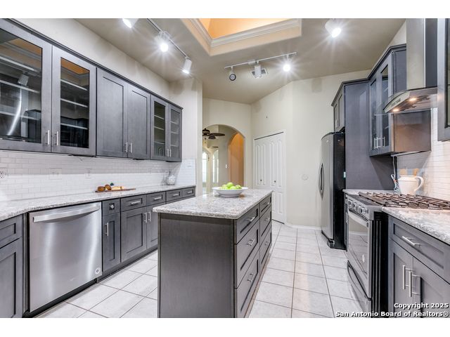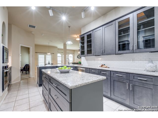 Relaunch to the Market! This meticulously maintained 4-bedroom, 3-bathroom single-story home has been refreshed with upgraded designer lighting and newly updated bathrooms that exude a true luxury feel. The spacious open layout centers around the beautifully updated kitchen with granite countertops, glass-front cabinets, built-in stainless steel appliances, and a large island offering both storage and functionality-perfect for meal prep and entertaining. The inviting family room, complete with a cozy fireplace, flows seamlessly into the dining area for effortless gatherings. The private primary suite is a serene retreat featuring a garden tub, separate shower, and dual vanities, while the updated guest bathroom ensures visitors enjoy the same upscale experience. This home blends warmth, style, and convenience-ready for its next owner to enjoy!