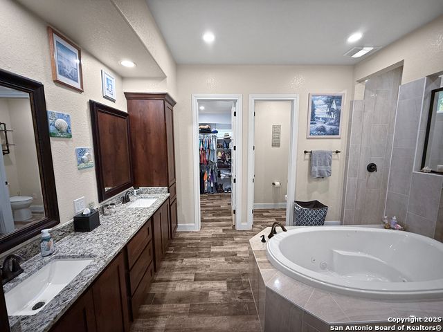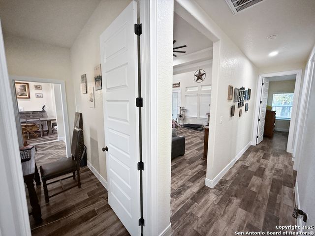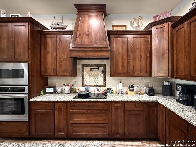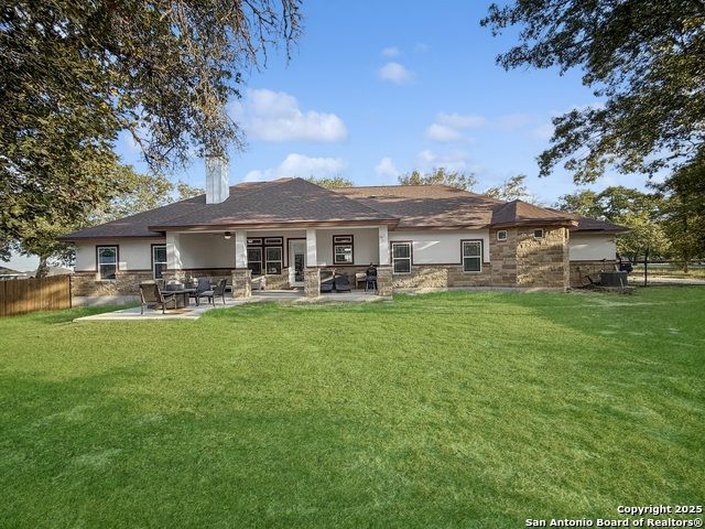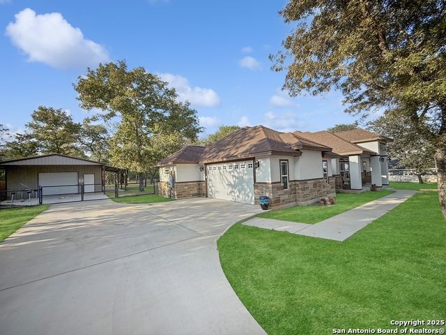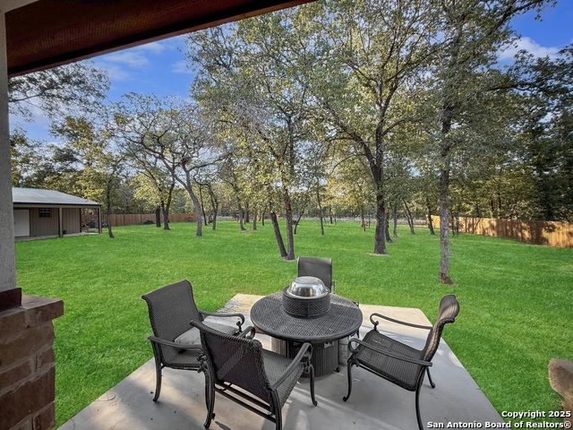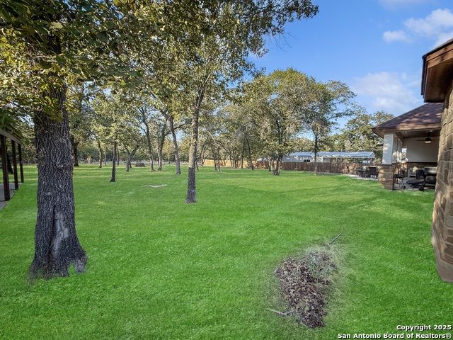 For a limited time, buyers using VA, FHA, or Conventional financing can take advantage of a 1/0 Buy Down incentive. This means your first-year interest rate is 1% lower than today's market rate (e.g., if today's rates are 6%, this can be 5% for the first year), offering meaningful monthly savings while you settle into your new home. Contact us for full details on how this lender incentive can make your purchase more affordable and help you secure this property with confidence. MUST SEE, beautiful 4 bedroom, 3 bath home in the sought out Cibolo Ridge community offering 2,424 square feet of living space on a 1.09 acre level lot with mature trees. Built in 2022, this property blends modern construction with timeless design. The dramatic living room showcases soaring stepped ceilings with double crown moulding and a stone fireplace that anchors the open layout. Enjoy a formal dining room, a large island with breakfast seating, and a chef's kitchen featuring a farm sink, custom cabinetry, and all granite countertops with stainless steel appliances. The primary suite delivers a spa like retreat with a central whirlpool tub and a spacious walk through dual head shower. Three full bathrooms provide comfort and function, including two with roll in showers. A versatile fourth bedroom with barn door entry is perfect for a home office or study. Outdoor living shines with a covered back patio overlooking the private, tree filled yard and a welcoming front porch. A detached workshop 24X40 with garage door, covered carport 24X10 in front and covered porch on side. The concrete driveway to workshop offers incredible storage, workspace, or hobby space in addition to the attached two car garage. The backyard is fully fenced with a large custom gate to the workshop. High end finishes include 8 foot doors, crown moulding, and fiber optic internet already installed. This home is minutes from military bases, major highways, downtown San Antonio, universities, shopping, restaurants, and local parks. With no HOA, properties in Cibolo Ridge move quickly, schedule your private showing today before it is gone!