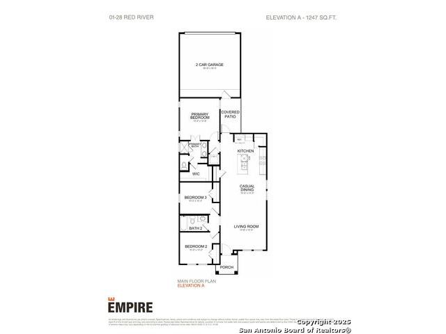 The Red River floor plan offers a perfect blend of comfort and functionality. Featuring three spacious bedrooms and two full baths, it provides ample space for families or guests. The open-concept living area seamlessly connects the kitchen, dining, and living spaces, creating an inviting atmosphere for entertaining. The primary bedroom includes an ensuite bathroom for added privacy and convenience. A two-car garage ensures plenty of storage and parking options. Thoughtful design details, like modern finishes and efficient use of space, make this home a stylish yet practical choice. Whether you're starting fresh or downsizing, this layout caters to your needs.