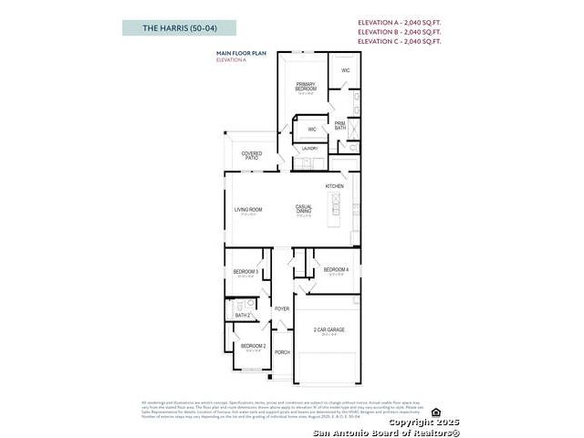 The Harris floorplan is a beautifully designed single-story home offering 2,040 square feet of open, functional living space. With four bedrooms and two full bathrooms, this layout maximizes flow and flexibility for a variety of lifestyles. The heart of the home is a spacious kitchen with a central island and casual dining area that opens into the oversized living room-perfect for gathering or unwinding. The private primary suite includes dual walk-in closets and a spa-inspired bath with a tiled walk-in shower, dual vanities, and premium finishes. A covered patio extends the living space outdoors, while the dedicated laundry room and two-car garage add everyday convenience. Designer finishes like quartz countertops, sleek tile flooring, shaker cabinets, and Moen chrome fixtures come standard. Energy-efficient features such as a tankless water heater, radiant barrier roof decking, and a SEER 2 Lennox AC system ensure both comfort and cost savings year-round.