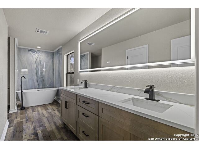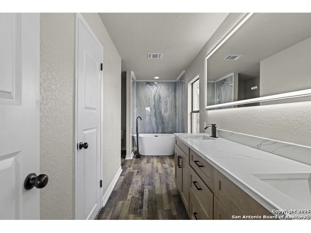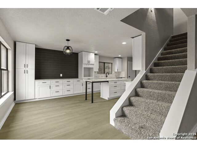 Welcome to 7738 Oak Hill Park, where generous space meets modern comfort. This 4,400 square foot updated home features a rare finished walkout basement with a full bath, making it one of the few of its kind in San Antonio. Step inside to find new flooring and fresh carpet throughout, along with a fully renovated kitchen featuring sleek countertops and a timeless design. The primary suite offers a true retreat with a remodeled bath, dual vanities, a large walk-in shower, relaxing tub and an expansive closet. The open layout flows seamlessly, offering multiple living and dining spaces, including a formal dining room, a cozy living room with fireplace, and a wine nook perfect for winding down after a long day. Upstairs, a spacious family room offers sweeping views and an ideal setting for entertaining or quiet evenings. Four generously sized bedrooms and two full bathrooms complete the upper level, providing plenty of room for everyone. The finished basement adds even more versatility with its own bath, making it perfect for a home office, studio, or sixth bedroom. A detached two car garage and access to neighborhood amenities such as a pool, clubhouse, tennis courts, and scenic trails round out the lifestyle. Conveniently located just minutes from UTSA, La Cantera, The Rim, Fiesta Texas, and top rated schools. This home delivers the space, updates, and location you have been looking for. Don't miss the chance to view and make it yours.