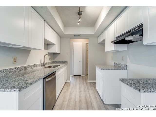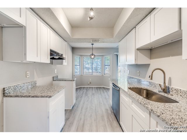 Here is your perfect "First Time Home" in Converse, Tx! This 1 story, 3 bedroom, 2 bath home in a quiet cul-de-sac features a welcoming front porch with semi privacy from the arch brick walls perfect for relaxation and enjoying your outdoor evenings. The exterior & interior have been freshly painted, new flooring throughout, updated kitchen boasts new white cabinets with granite counter tops. The bathrooms have new granite counter tops and tile tub surrounds on both bathrooms. This home also has new stainless steel stove and dishwasher. The high ceilings make this home feel spacious and open. Conveniently located near dinning and shopping options. This home is a great find!