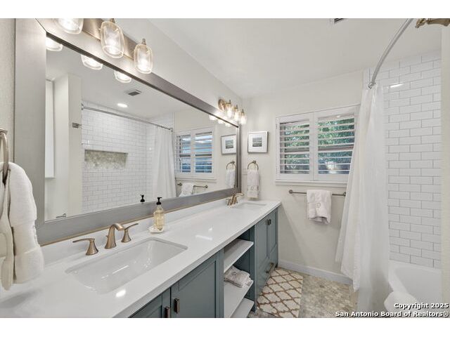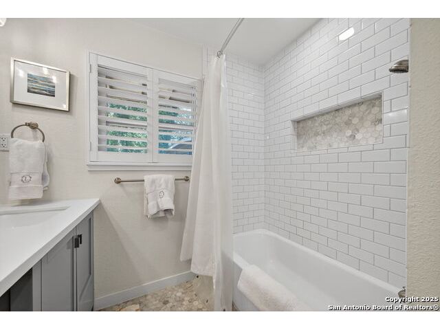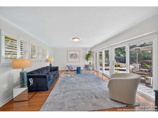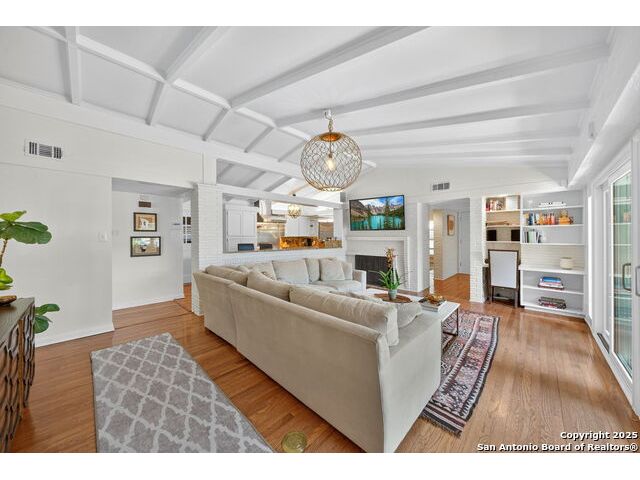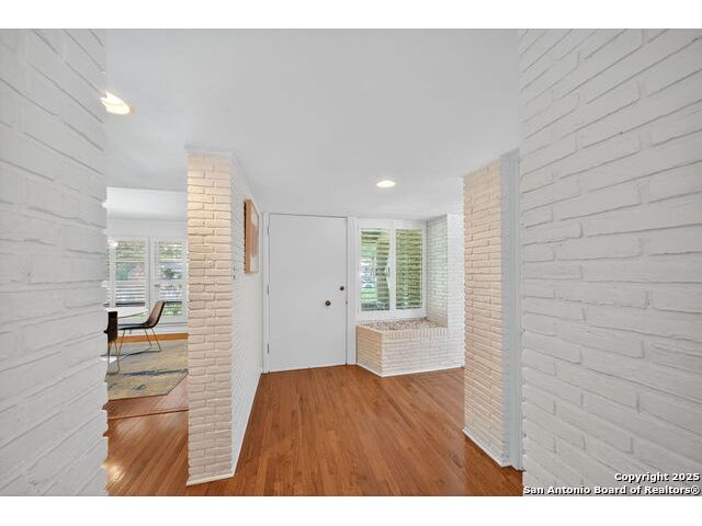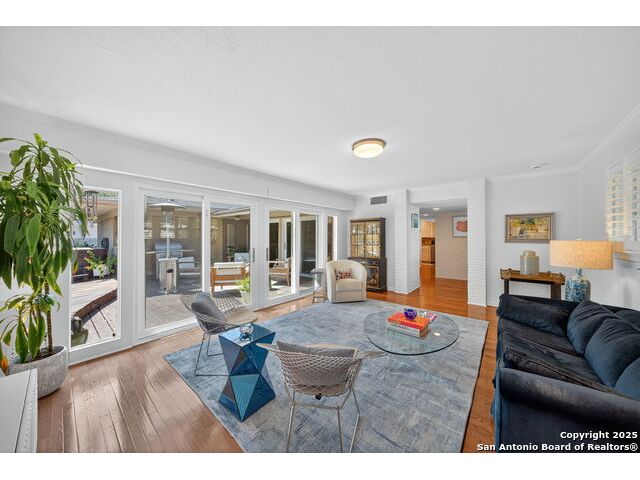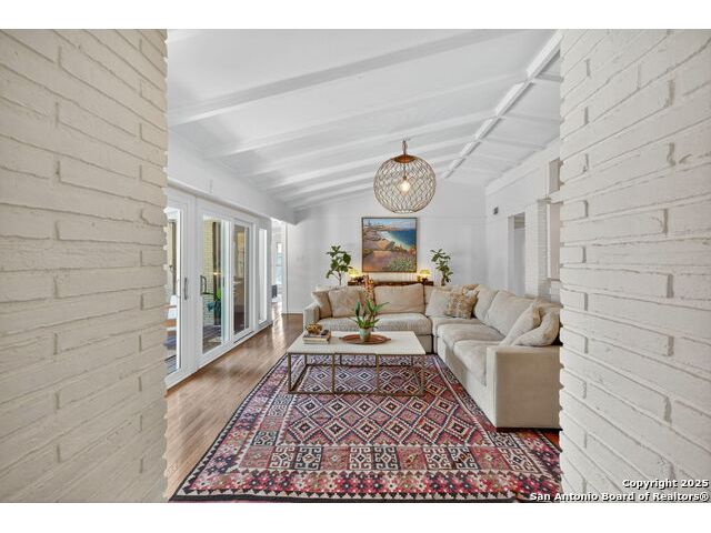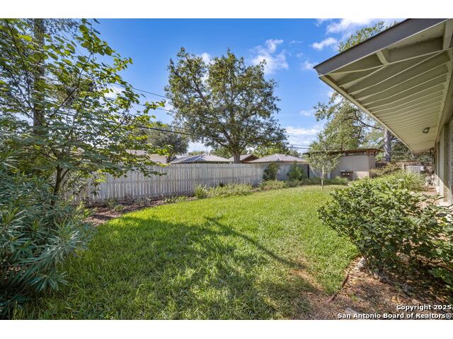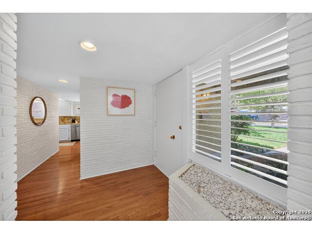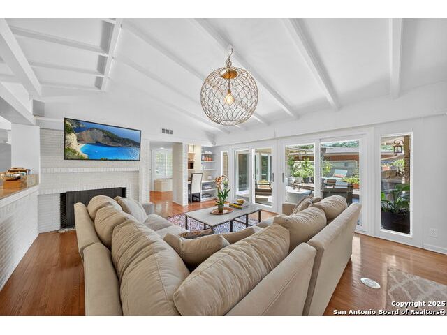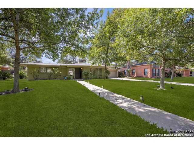 Charming midcentury home in the heart of AHISD. This 3 bedroom, 2 bath residence offers two spacious living areas, a functional single story layout, and timeless design elements including brick accent walls. Both bathrooms have been recently renovated, blending modern comfort with timeless style. Large windows fill the home with natural light, while the backyard offers additional versatility with a storage shed. Located within walking distance to two schools and surrounded by mature trees, this property combines convenience, character, and updates in one of San Antonio's most desirable neighborhoods.