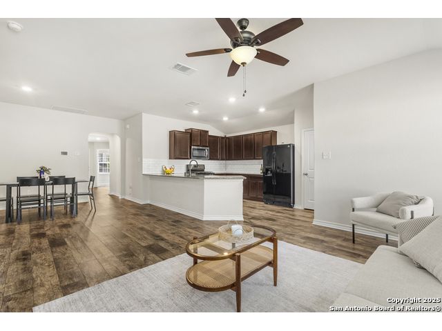 WELCOME HOME! Modern, aesthetically pleasing, and a convenient floor plan is sure to give you that "wow effect". 6523 Hoffman Plain is a 3 bedroom, 2 full bath, one-story home located in the desirable Whisper Falls community. Built in 2020, this well maintained home still holds a transferable builder 5 year foundation warranty. This mindful floorpan offers a spacious primary suite with a master bath containing a double vanity, bathtub, walk in shower, and a powder room. Needless to say, the primary closet is a must see! Keep more money in your pocket, the following items convey: blinds, refrigerator, dishwasher, stove, hood range, microwave, garage door opener, sprinkler system, and, did I mention the home is pre-plumbed for a water softener? Seller is also offering 6K towards buyer closing costs plus title & survey.Enjoy a pool, playground, splash pad, basketball courts, and many other amenities without having to leave the community. Proximity to major highways, shopping centers, schools, and Lackland AFB, makes this home that much more desirable and convenient. Book your showing TODAY!