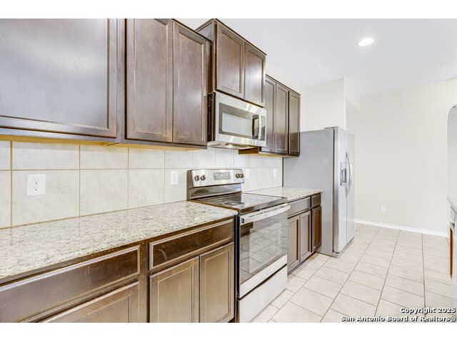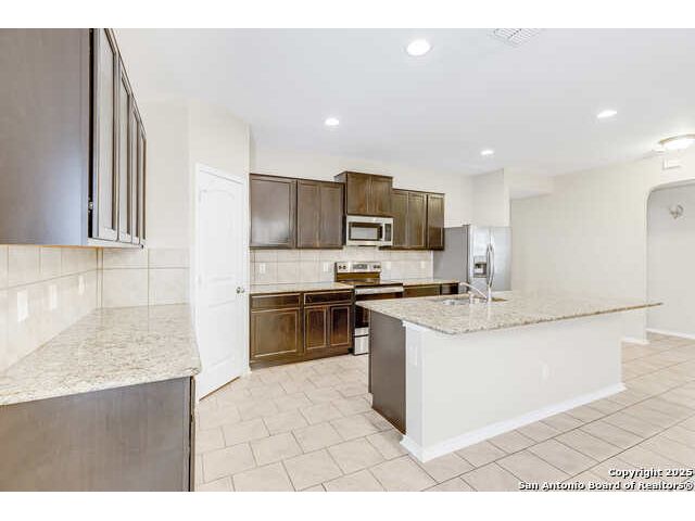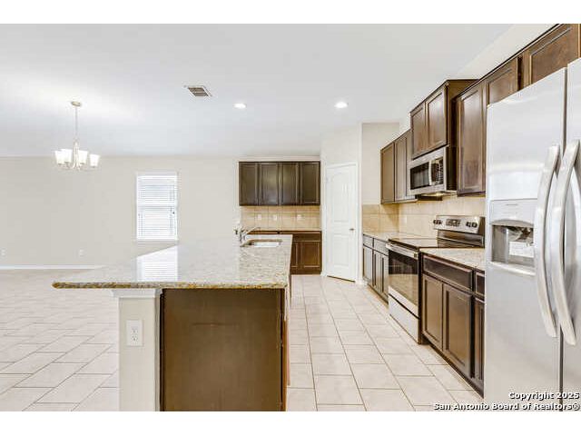 Welcome to 5614 Medina Farm, a beautifully maintained 4-bedroom, 2-bathroom home offering comfort, style, and convenience in one of San Antonio's most desirable communities. This one-story home features an open-concept floor plan filled with natural light, perfect for both everyday living and entertaining. The spacious kitchen boasts sleek granite countertops, a large island, ample cabinetry, and modern appliances, seamlessly flowing into the dining and living areas. The primary suite is a private retreat with a walk-in closet and a full ensuite bath featuring a dual vanity and a relaxing soaking tub with separate shower. Additional highlights include durable tile and wood-look flooring, neutral finishes throughout, and a two-car garage. Step outside to a private backyard with a covered patio, ideal for outdoor dining or relaxing evenings. Conveniently located near Loop 410, I-10, and major employers, with easy access to shopping, dining, schools, and downtown San Antonio. This move-in ready home perfectly blends comfort and location-schedule your showing today!