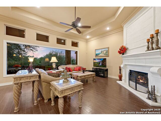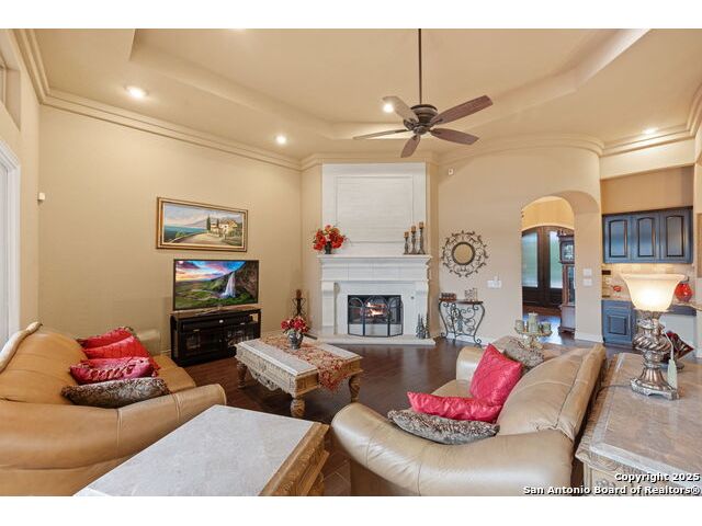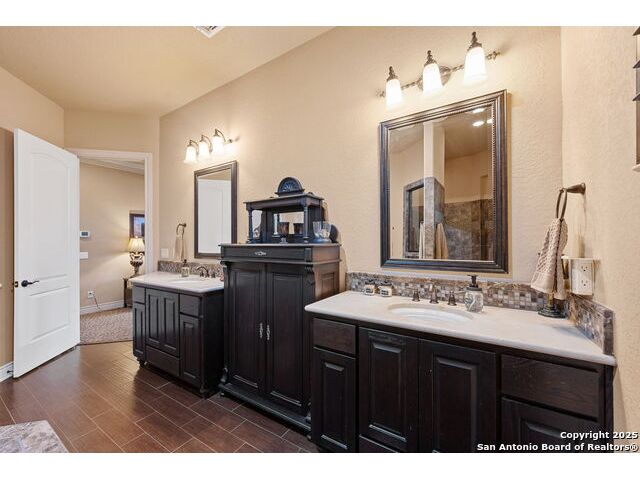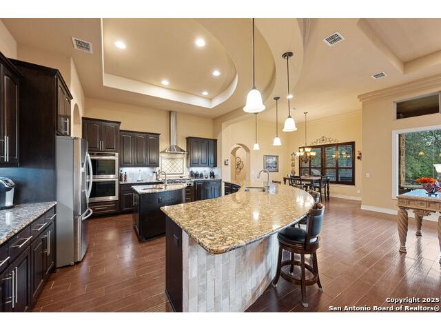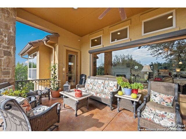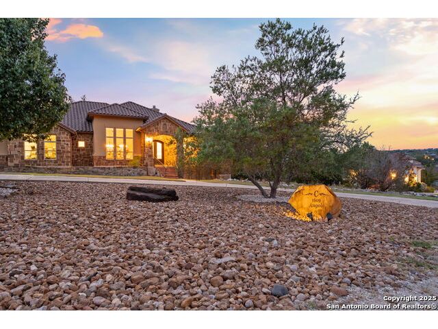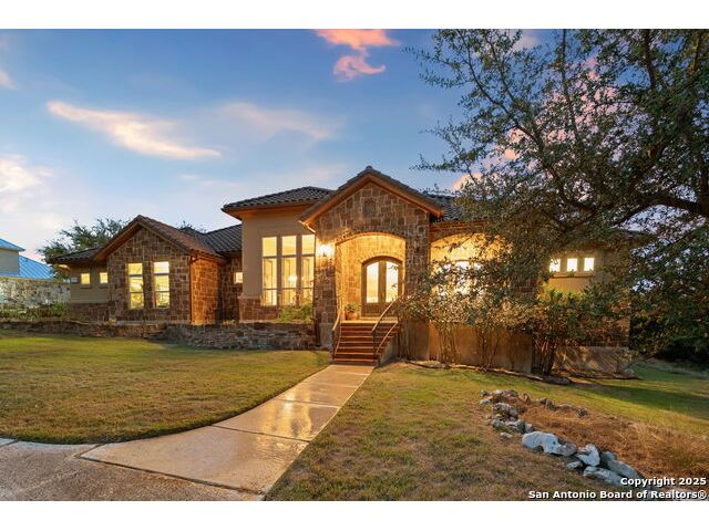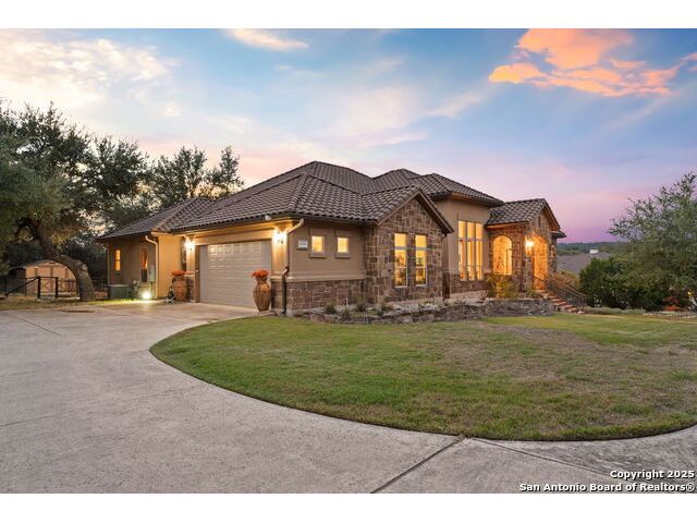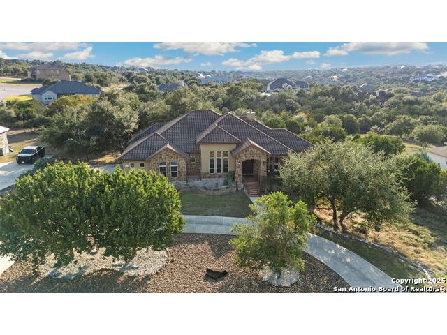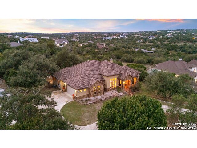 Experience refined Hill Country living in this custom 2013 Jimmy Jacobs masterpiece tucked away on a quiet cul-de-sac in prestigious Vintage Oaks. Spanning 3,053 sq. ft., this home blends timeless architecture with elevated design. At the heart of the home, the chef's kitchen boasts custom cabinetry, granite countertops, and a butler's pantry connecting to the formal dining room. The kitchen flows seamlessly into the living room, where expansive windows frame breathtaking Hill Country sunsets-a perfect backdrop for both everyday living and elegant entertaining. The owner's retreat is a private sanctuary with patio access and a spa-inspired bath featuring dual vanities, a soaking garden tub, and a walk-in shower. Two secondary bedrooms share a well-appointed Jack-and-Jill bath, while a dedicated office provides quiet productivity. Step outside to your personal resort. The backyard was designed for unforgettable gatherings with a custom outdoor kitchen and firepit, creating an extraordinary outdoor living experience. This home offers the best of luxury, comfort, and community-an exceptional opportunity in one of the Hill Country's most coveted neighborhoods.