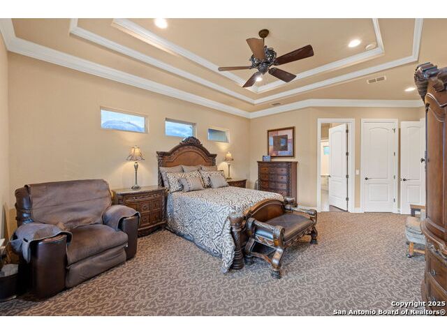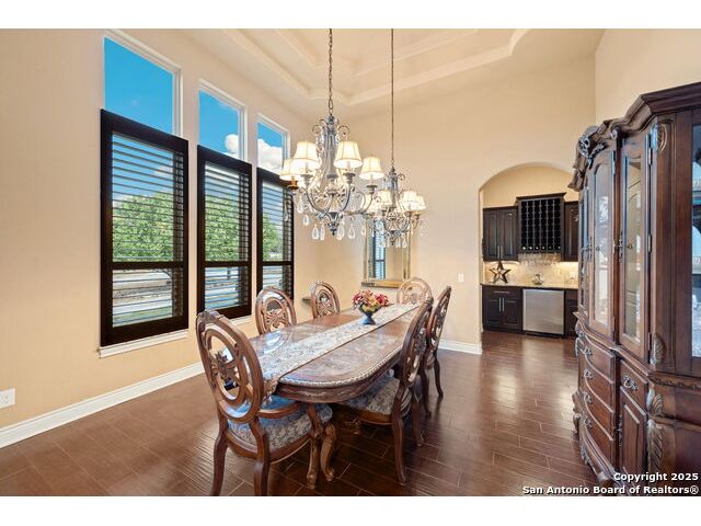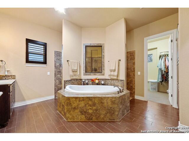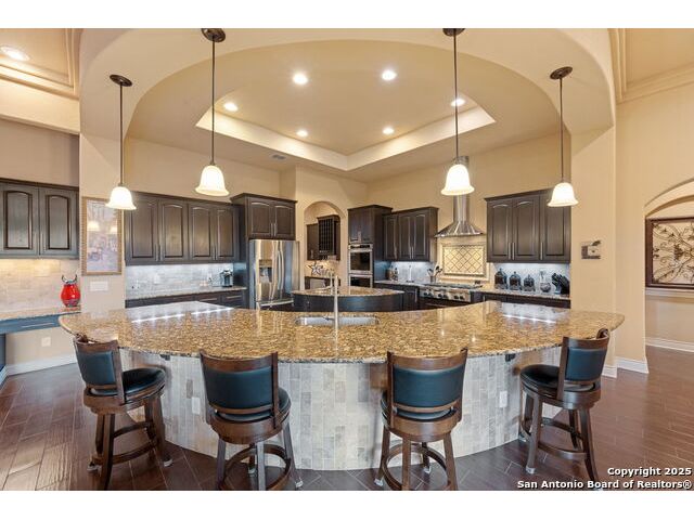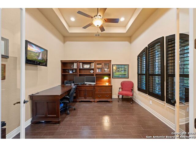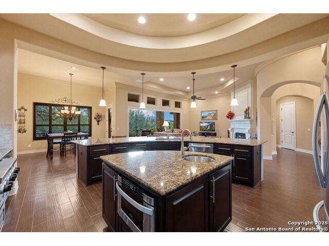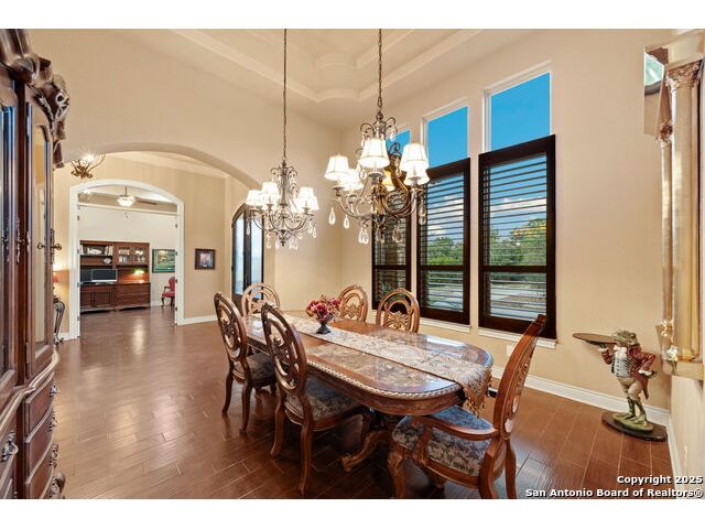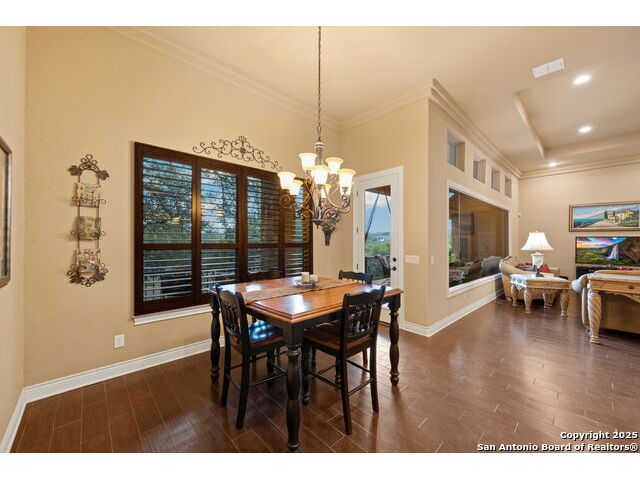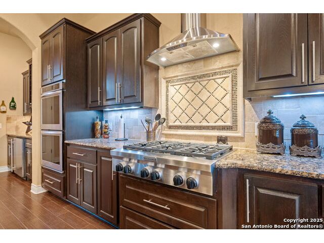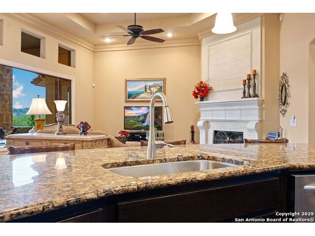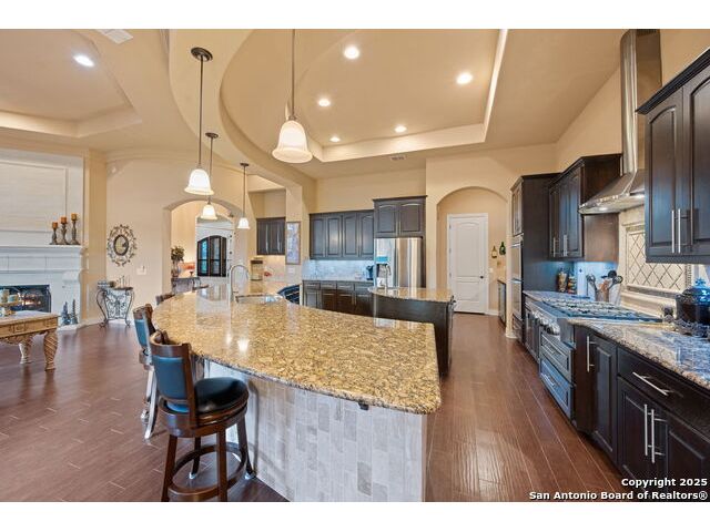 Experience refined Hill Country living in this custom 2013 Jimmy Jacobs masterpiece tucked away on a quiet cul-de-sac in prestigious Vintage Oaks. Spanning 3,053 sq. ft., this home blends timeless architecture with elevated design. At the heart of the home, the chef's kitchen boasts custom cabinetry, granite countertops, and a butler's pantry connecting to the formal dining room. The kitchen flows seamlessly into the living room, where expansive windows frame breathtaking Hill Country sunsets-a perfect backdrop for both everyday living and elegant entertaining. The owner's retreat is a private sanctuary with patio access and a spa-inspired bath featuring dual vanities, a soaking garden tub, and a walk-in shower. Two secondary bedrooms share a well-appointed Jack-and-Jill bath, while a dedicated office provides quiet productivity. Step outside to your personal resort. The backyard was designed for unforgettable gatherings with a custom outdoor kitchen and firepit, creating an extraordinary outdoor living experience. This home offers the best of luxury, comfort, and community-an exceptional opportunity in one of the Hill Country's most coveted neighborhoods.