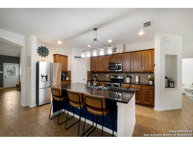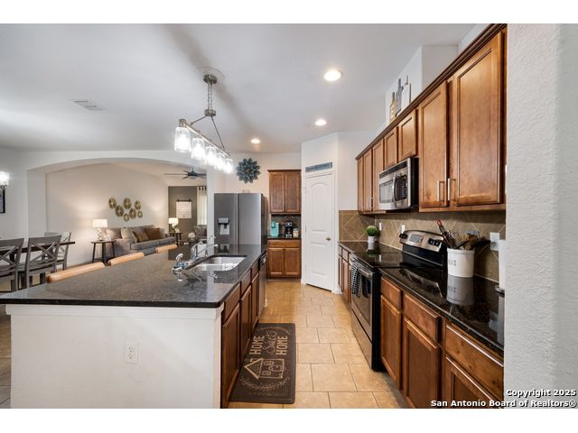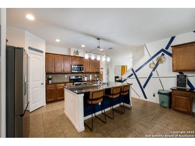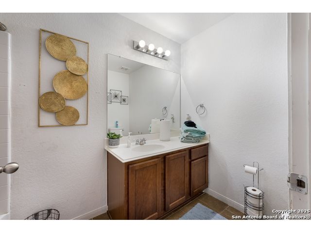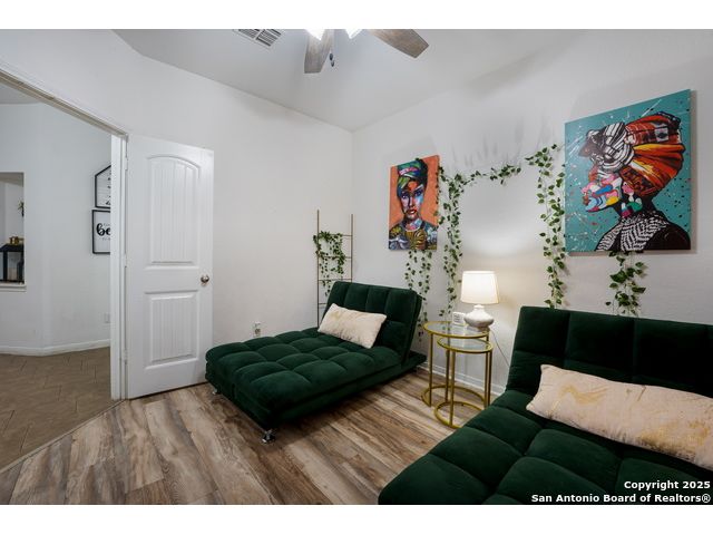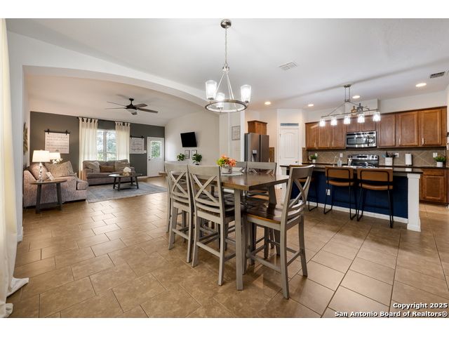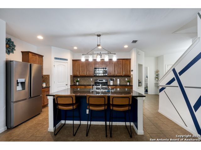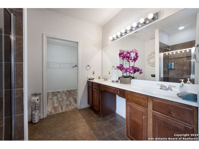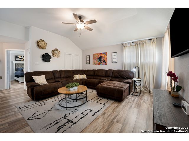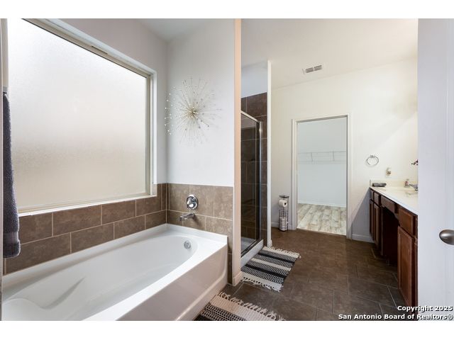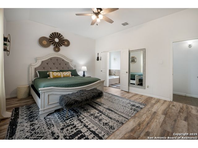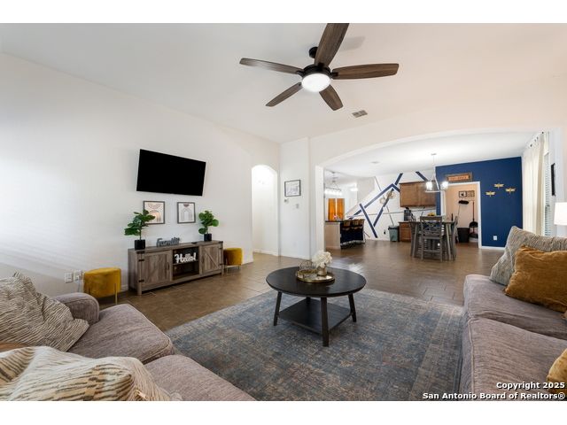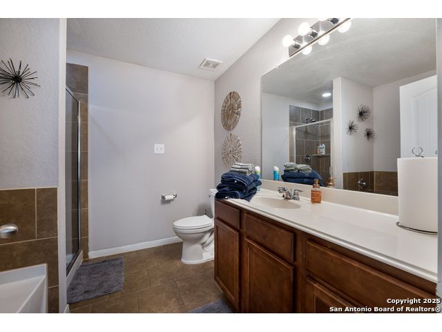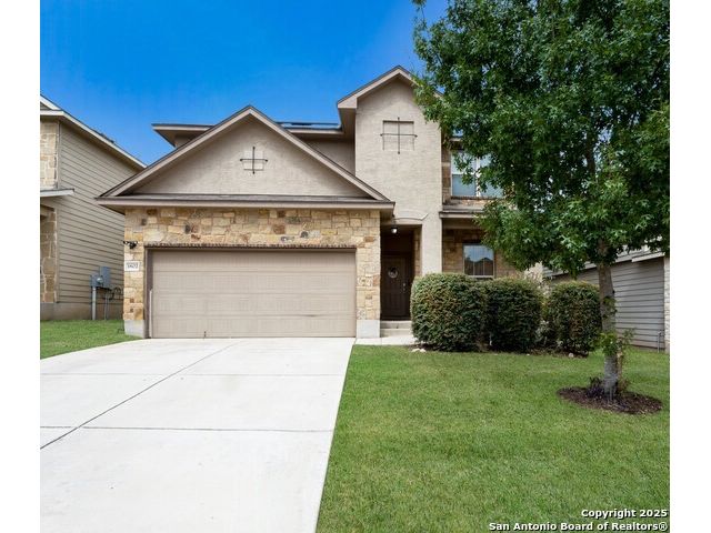 Congrats! You've found the winner!! This stunning 4-bedroom, 3.5-bath residence captivates from the curb with its elegant stone and stucco exterior. Step inside to an interior defined by sophisticated luxury tile flooring, stylish accent walls, and a spacious living room that serves as the heart of the home. A standout feature is the versatile floor plan, which includes a dedicated home office and two primary bedroom suites-one conveniently located on the main level-offering an ideal solution for multi-generational living or private guest accommodations. Every detail is curated for comfort and style, creating an environment that is both welcoming and impressive. The living space extends outdoors to a very large, fully fenced backyard, presenting a blank canvas for your dream oasis, whether for entertaining, gardening, or recreation. Located in the highly-regarded Northside ISD, this home offers unparalleled convenience. You are just minutes from premier shopping and dining at the Alamo Ranch Marketplace and The Shops at Dove Creek. The location is also ideal for an easy commute, situated less than 30 minutes from Lackland AFB and the greater Joint Base San Antonio (JBSA) area. This meticulously maintained property combines luxury, space, and a prime location. Schedule your private tour today!