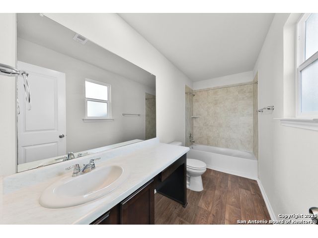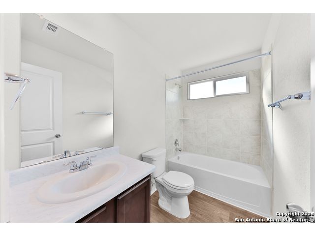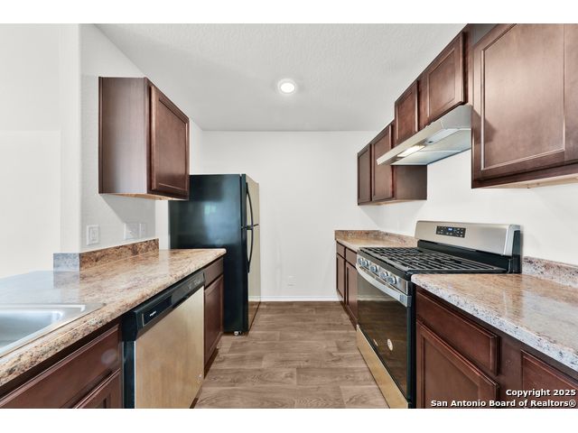 This 3 bedroom, 2 bathroom layout is designed to provide you a comfortable place to call home. The inviting entryway leads to the foyer which connects to the two secondary bedrooms and the secondary full bathroom. The foyer opens up to the kitchen, dining area and living area. The primary bedroom suite is located off the living area and includes a walk-in closet & bath. The utility room is located across from the kitchen which includes all Appliances. Additional features of the home, include NEW 30 Year (heavy duty) Roofing, laminate flooring in kitchen, wet areas, and living room. Enjoy your community with multiple swimming pools, tennis courts, basketball courts, playground, clubhouse, BBQ grills and Jogging Trails. Redbird Ranch is conviniently located close to HEB, numerous shopping strips, Castroville and Lackland AFB. Awesome!! VA assumable at 2.875%