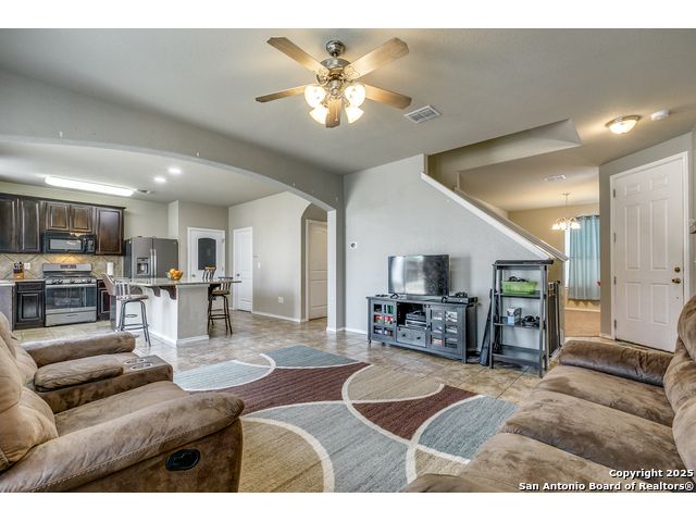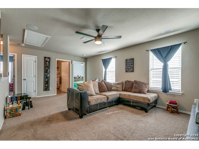 Stunning home in the quaint Trophy Ridge Subdivision. Open floor plan with high ceilings, spacious living area, large kitchen with extra large island - perfect for entertaining. Gas cooktop, custom cabinets, loft or second living area upstairs, large master suite with private master bath. Beautiful backyard retreat. Minutes from LAFB, UTSA,USAA, Sea World, and La Cantera. Walking distance to schools, HEB, retail shopping, and restaurants.