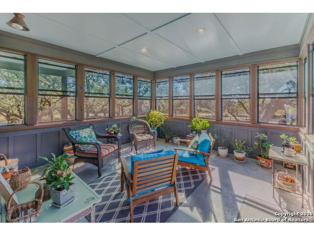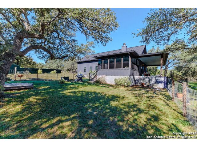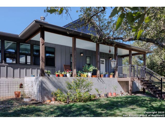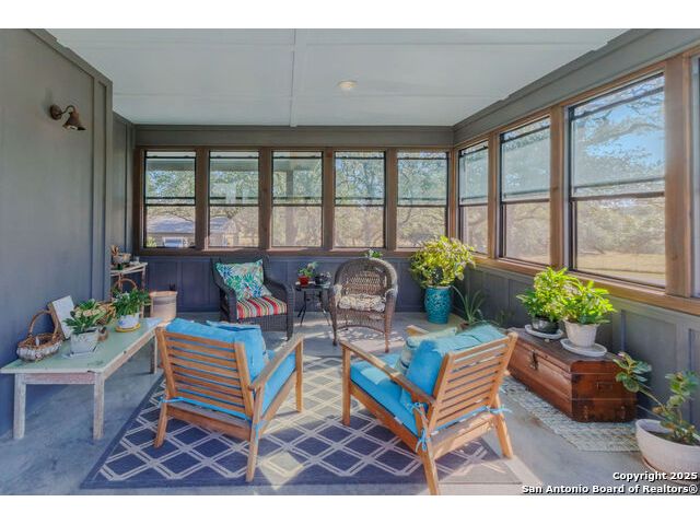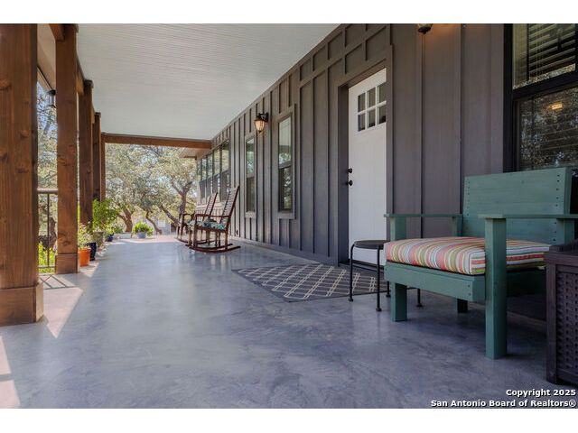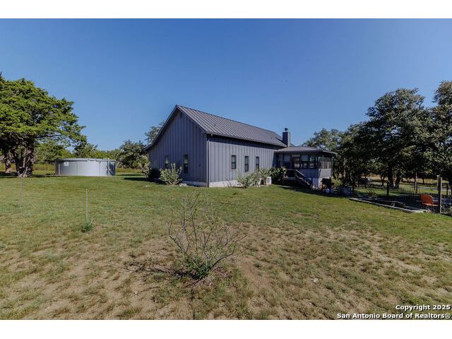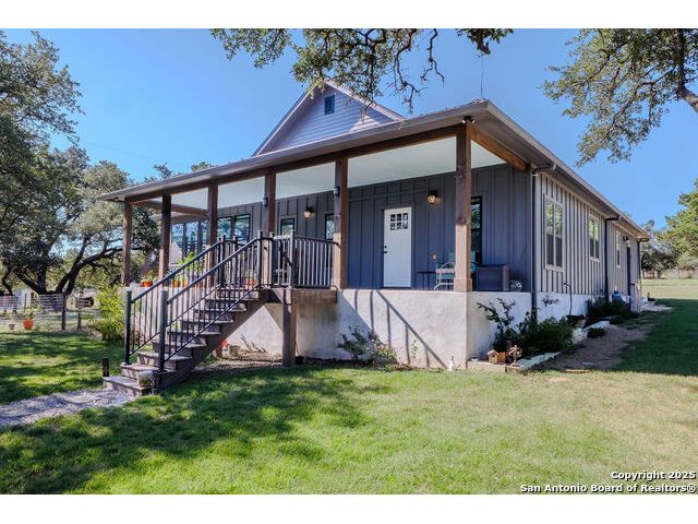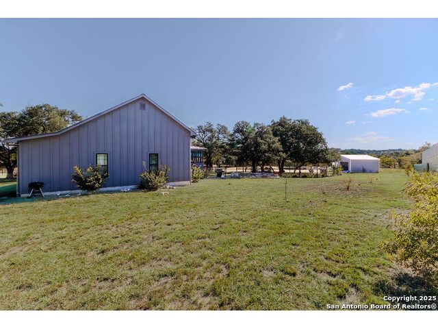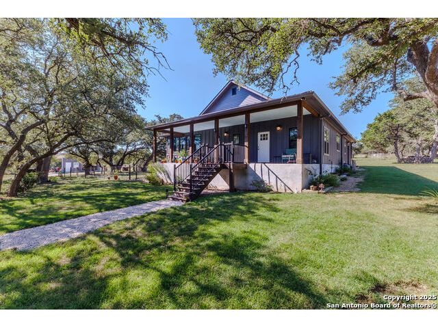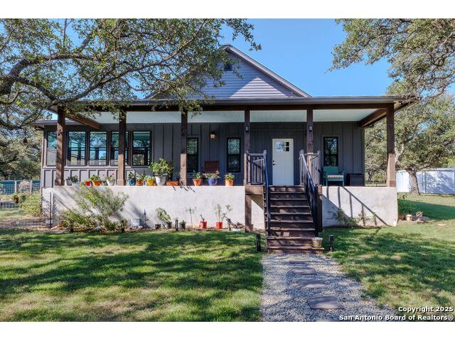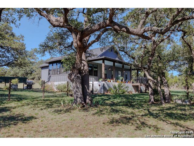 Tucked away under a canopy of majestic oaks, 872 Oak Drive in Blanco is a slice of Hill Country heaven-8.96 ag-exempt, unrestricted acres where nature, comfort, and craftsmanship come together in the most welcoming way. From the moment you arrive, the oversized front patio greets you like an old friend, inviting you to slow down and take in the peaceful surroundings. Step inside and you'll immediately notice the care and detail poured into this newer custom home-butcher block countertops, open shelving, Bosch appliances, and warm natural light flooding in from thoughtfully placed windows. Just beyond, a spectacular Florida room adds an additional 256 sq ft of outdoor living, wrapped in 14 windows that bring the outdoors right to your feet. This versatile space could easily be updated to fully conditioned living area, expanding year-round usability and opening the door to endless possibilities. Every inch of the home feels intentional, cozy, and beautifully functional. But the magic doesn't stop at the door. Step outside and feel the breeze as you walk the land-fully fenced, with a cross-fenced area perfect for animals to lounge beneath the wide arms of a mighty oak. Fruit trees-peach and olive-dot the property, offering both beauty and bounty. For the creatives or the doers, an insulated workshop awaits with a roll-top door, side-covered area, dedicated 200-amp power, and its own electrical meter-ready for any passion project. Water? You're covered with a 20,000-gallon Pioneer rainwater collection tank already in place. The rest of the land is wide open and ready for whatever dream you bring-gardens, additional structures, animals, or simply space to breathe. No restrictions. Just wide Texas skies, privacy, and a home that truly feels like a retreat. Come experience it-you won't want to leave.