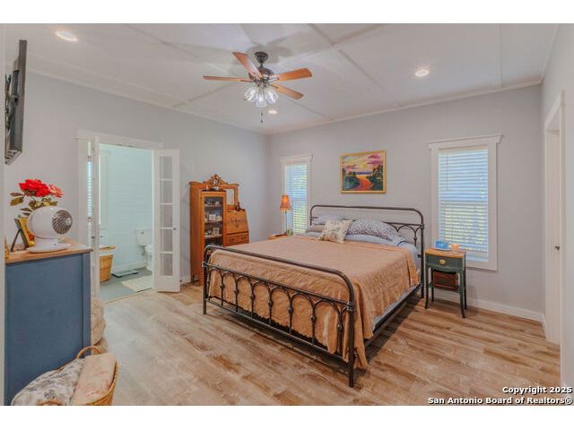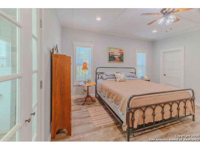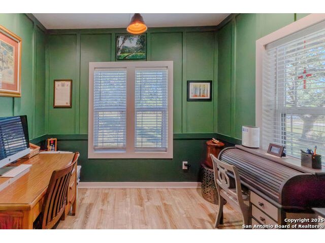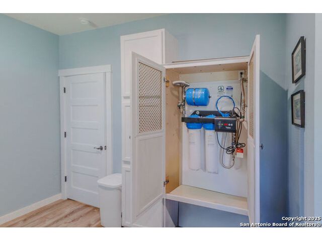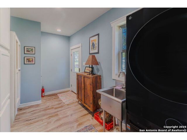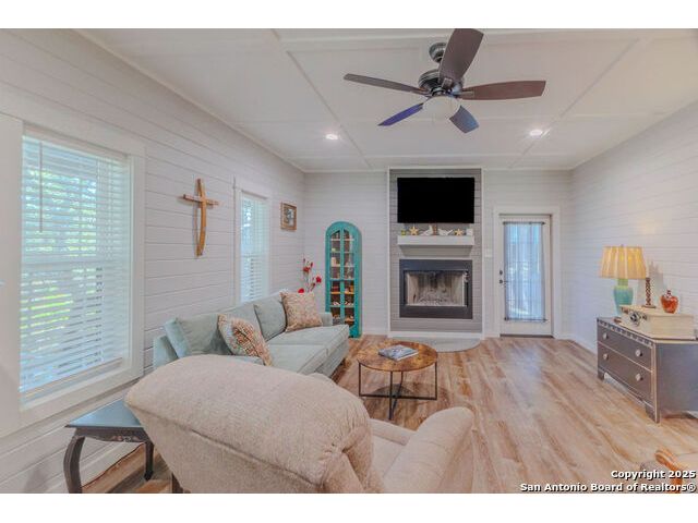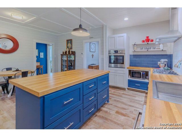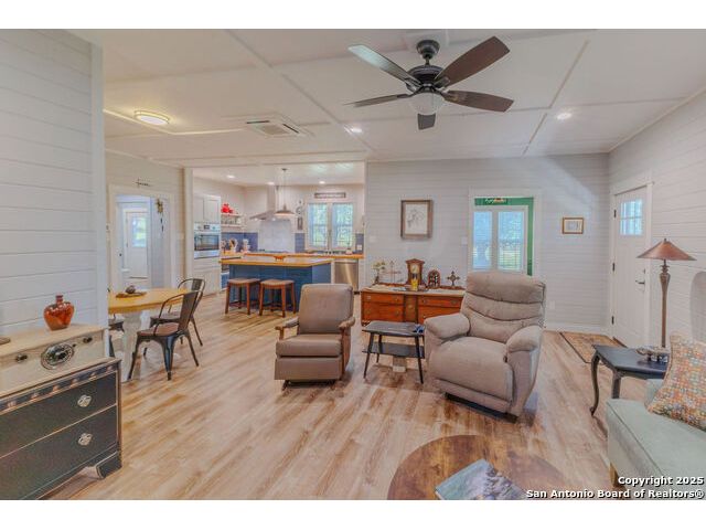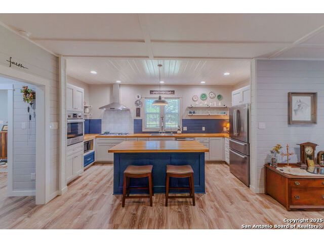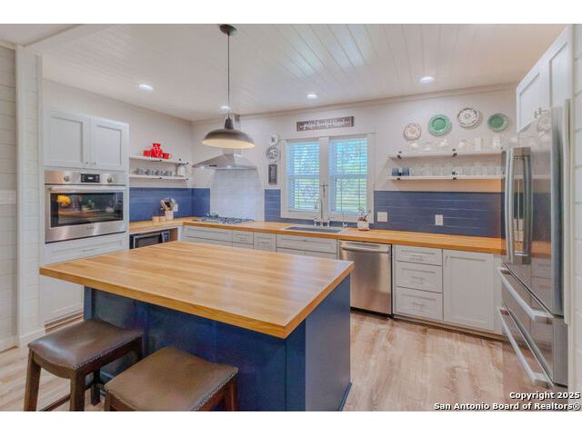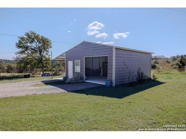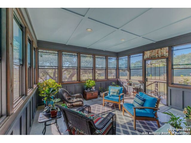 Tucked away under a canopy of majestic oaks, 872 Oak Drive in Blanco is a slice of Hill Country heaven-8.96 ag-exempt, unrestricted acres where nature, comfort, and craftsmanship come together in the most welcoming way. From the moment you arrive, the oversized front patio greets you like an old friend, inviting you to slow down and take in the peaceful surroundings. Step inside and you'll immediately notice the care and detail poured into this newer custom home-butcher block countertops, open shelving, Bosch appliances, and warm natural light flooding in from thoughtfully placed windows. Just beyond, a spectacular Florida room adds an additional 256 sq ft of outdoor living, wrapped in 14 windows that bring the outdoors right to your feet. This versatile space could easily be updated to fully conditioned living area, expanding year-round usability and opening the door to endless possibilities. Every inch of the home feels intentional, cozy, and beautifully functional. But the magic doesn't stop at the door. Step outside and feel the breeze as you walk the land-fully fenced, with a cross-fenced area perfect for animals to lounge beneath the wide arms of a mighty oak. Fruit trees-peach and olive-dot the property, offering both beauty and bounty. For the creatives or the doers, an insulated workshop awaits with a roll-top door, side-covered area, dedicated 200-amp power, and its own electrical meter-ready for any passion project. Water? You're covered with a 20,000-gallon Pioneer rainwater collection tank already in place. The rest of the land is wide open and ready for whatever dream you bring-gardens, additional structures, animals, or simply space to breathe. No restrictions. Just wide Texas skies, privacy, and a home that truly feels like a retreat. Come experience it-you won't want to leave.