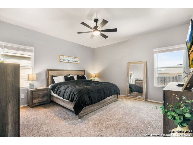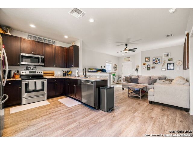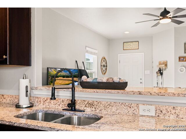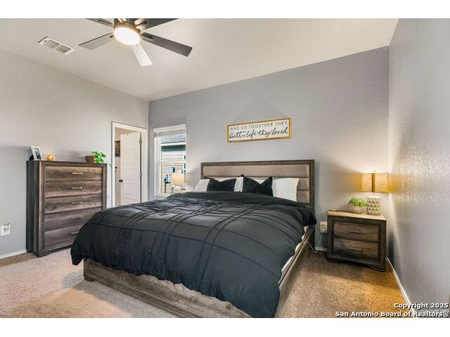 **Preferred lender is offering lender credit for closing cost or rate buy down** **ASSUMABLE LOAN OPTION** Charming Move-In Ready Home in Prime Location! This beautifully maintained single-story home features 3 spacious bedrooms and 2 full bathrooms with an open-concept layout perfect for modern living. Enjoy brand-new carpet (installed August 30 - after photos!) in all bedrooms and easy-care vinyl flooring throughout the main living areas. The kitchen shines with granite countertops, a breakfast bar, and a stainless-steel refrigerator that conveys with the sale. The updated laundry room includes stylish cabinetry and a stunning stained wood shelf for added storage and charm. Additional highlights include a generous living area, a 2-car garage, and a backyard ready for your personal touch. Located in a vibrant community offering fantastic amenities like neighborhood pool, park/playground, and bike trail. Conveniently situated near I-10 and just minutes from shopping, dining, and top-rated Judson ISD schools. Schedule your showing today!