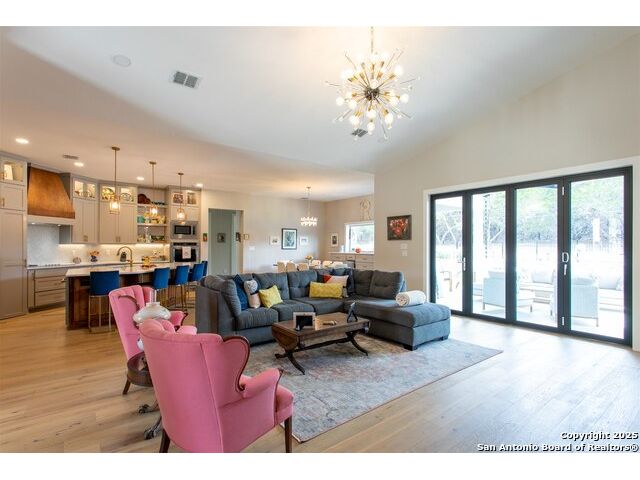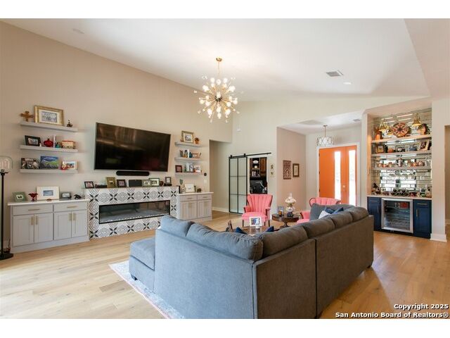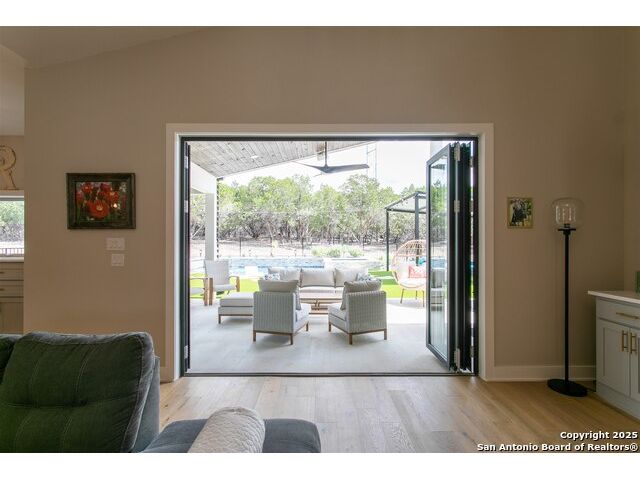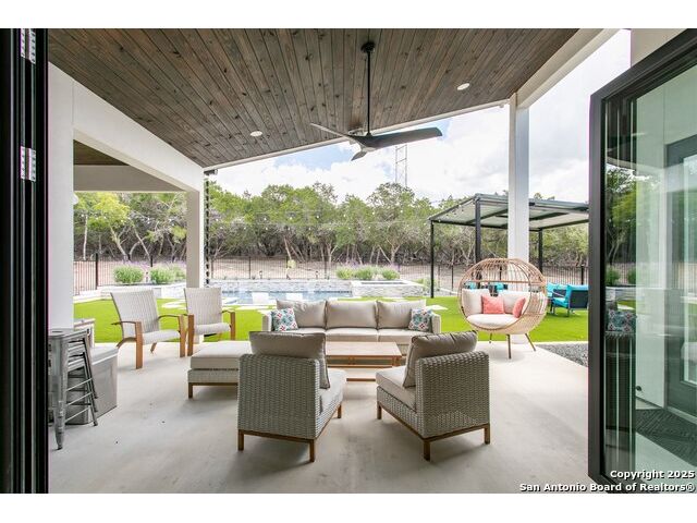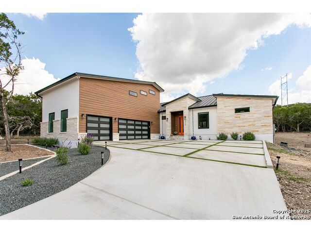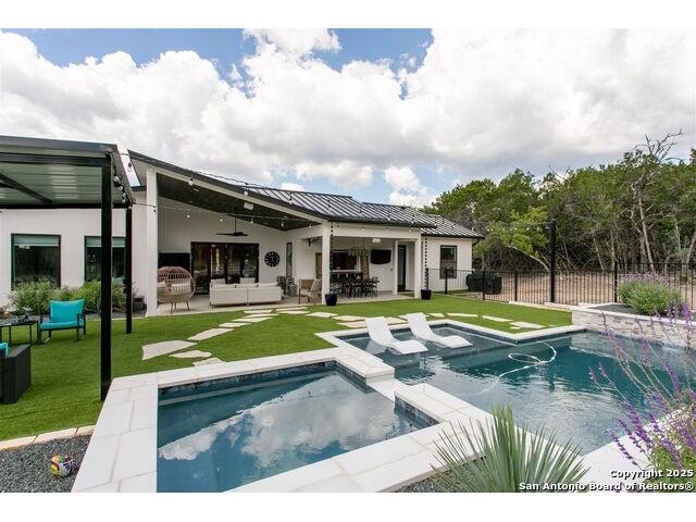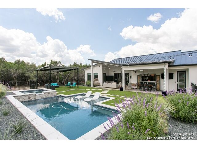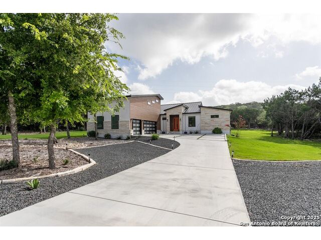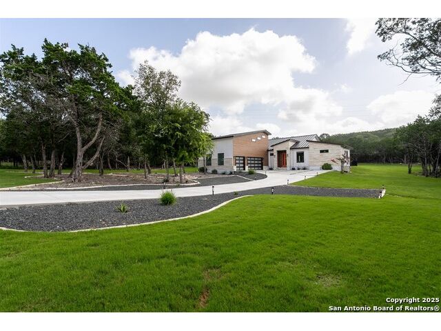 Luxurious Contemporary Meets Hill Country, Located In The Gated Community of The Heights, This Custom Build Is The Builders Personal Home. Curb Appeal Is Beautiful As You Drive down the long drive To This Home that sits back on lot for your privacy. As You Enter The Front Door, You Will See the Magnificent Views From The Front Door To The Spacious Covered Back Porch (sitting area 20' x 16') & Dining Area (15' x 10') & The Pool & Spa With No Maintenance Turf Grass. Also there is a 14' x 14' Covered Pergola. Enjoy the privacy of this 3.5 Acre Wooded Lot. Kitchen Has Stainless Appl, Huge Pantry, Beautiful Quartz Counters, A Pass Thru Window To The Outdoor Dining Area, Huge Island To Accommodate Bar Stools Looking Out To The Great Room and Pool Area. The Great Room Boast A beautiful Fireplace, Folding Accordion Glass Doors Go To The Porch/Pool Area, Wine Fridge & Built-In Bar. Master Bathroom Boast a Beautiful Soaking Tub And Huge Walk-In Shower, Very Large Walk-In Closets With Built-Ins. Also Two Generous Size Guest Bedrooms Plus A Bonus Room Above The Garage That Could Be Used As Another Media Room, Study, Game Room. Additional carpeted & Insulated Storage Closet Off The Bonus Room.