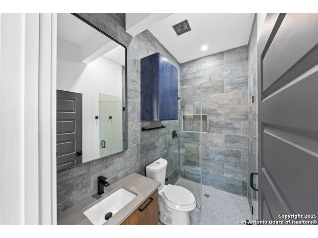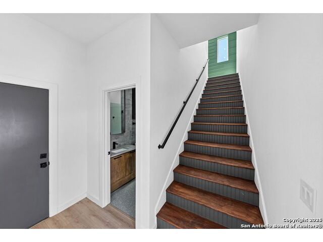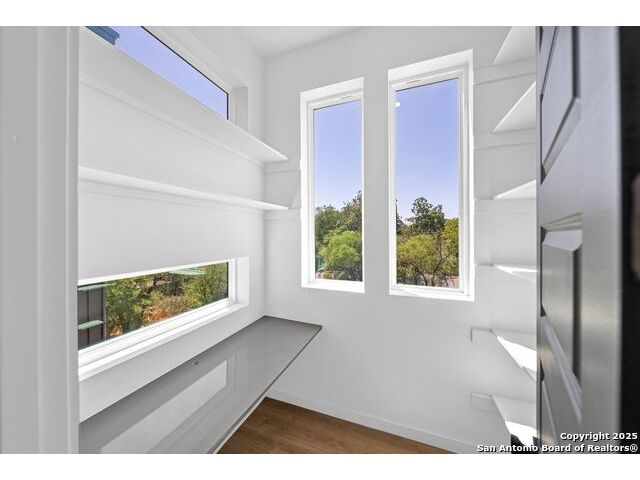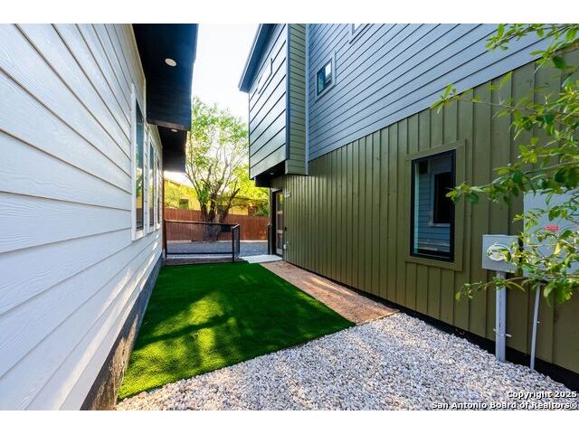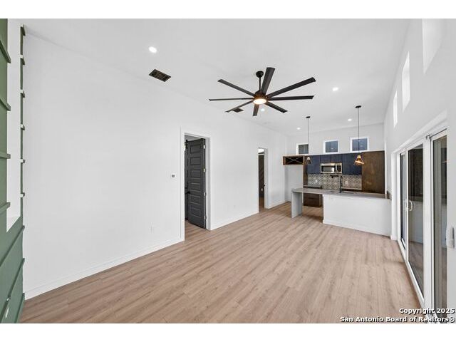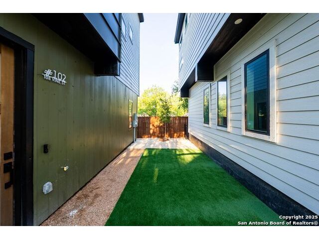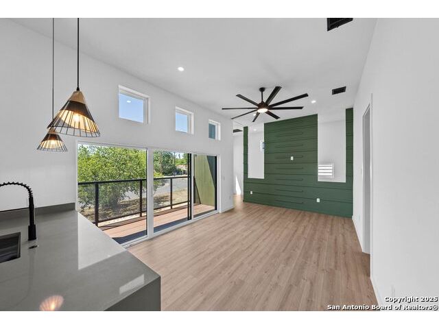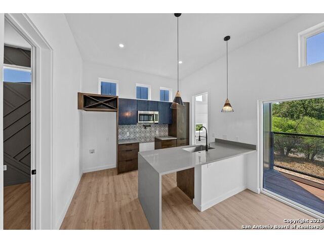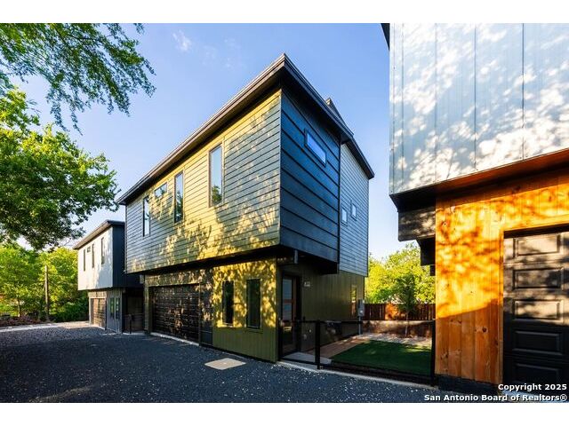 Modern living in the heart of downtown San Antonio! Welcome to Unit 102 - a thoughtfully designed 2-bedroom, 2-bath home with an office and a spacious utility room, maximizing its 1,681 square feet (including garage). The main living spaces are located on the second floor, offering elevated views, abundant natural light, and striking vaulted ceilings. The sleek kitchen boasts quartz countertops, custom cabinetry, a full decorative backsplash, stainless steel appliances, a pot filler, and a vent hood - perfe