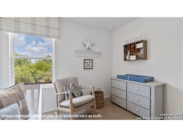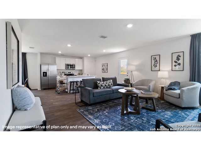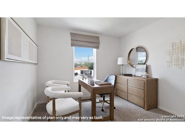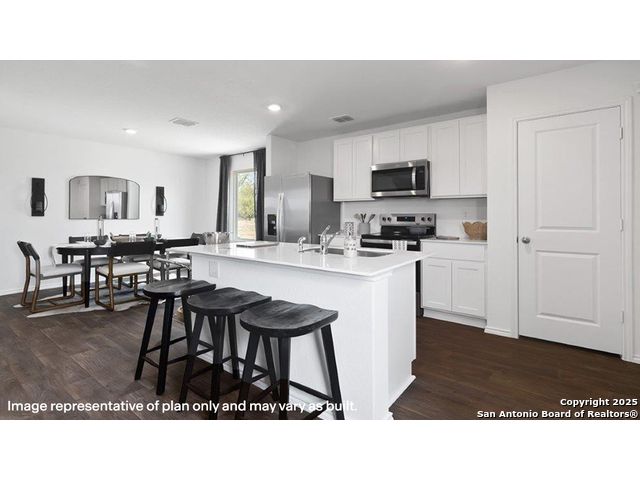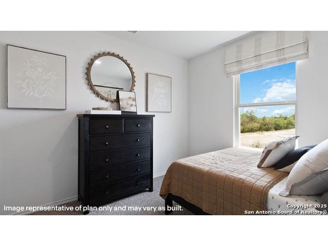 The Franklin plan is one of our two-story homes featured in Preserve at Medina in Von Ormy, TX. This new home layout offers 2 classic front exteriors, 5 bedrooms, 2.5 baths, 2 car-garage and 1891 square feet of comfortable living. Step inside The Franklin to find an elongated foyer opening to an open concept living room, kitchen, and dining area. The gourmet kitchen faces the living area so you don't miss a thing while cooking and includes quartz counter tops, stainless steel appliances and shaker style cabinetry. The main bedroom is located toward the front of the home on the second story and features an attractive attached bathroom with a walk-in shower, quartz countertops, a grand walk-in closet and plenty of storage space. The second story includes all secondary bedrooms, and two full bathrooms. You'll have carpeted floors in every bedroom and sheet vinyl flooring in your bathrooms and utility room. Additional features include sheet vinyl flooring in entry, living room, and all wet areas, quartz counter tops in all bathrooms and HOME IS CONNECTED base package. Using one central hub that talks to all the devices in your home, you can control the lights, thermostat and locks, all from your cellular device.