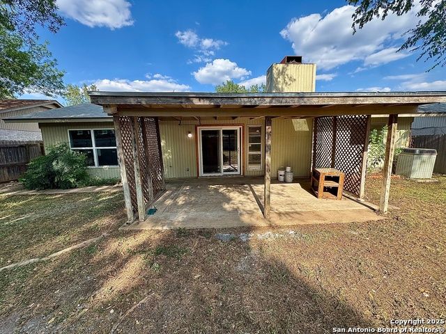 This move in ready, updated Mediterranean style 3 bed 2 bath home offers open-concept single level living with vaulted ceilings, wood beams, and cozy fireplace with a retro, organic 1970s vibe. Light and airy interior inspires creativity, invigoration, and relaxation with plants, art and music. Covered back patio invites family, friends and pets to enjoy a BBQ, birthday party or outdoor cocktails. Sun dappled, brick arched, gated front porch beckons gardeners, coffee drinkers and bird watchers. Nearby access to OP Schnabel Park encourages enjoyment of an active lifestyle, such as hiking, biking, running. Restaurants, schools, and shopping centers are convenient to this friendly, tranquil neighborhood with mature trees adjacent to Leon Creek Greenway. Don`t miss an opportunity for a private showing of this beautifully staged home!