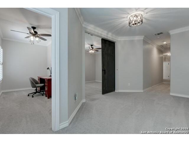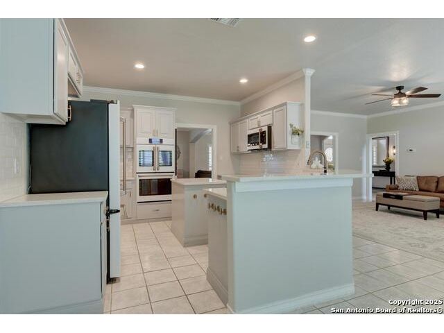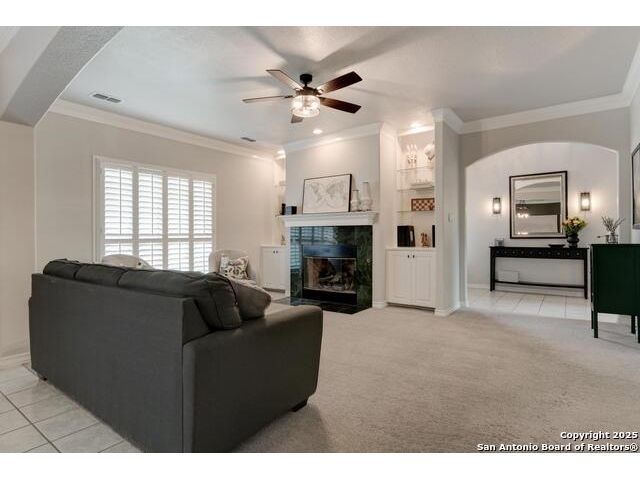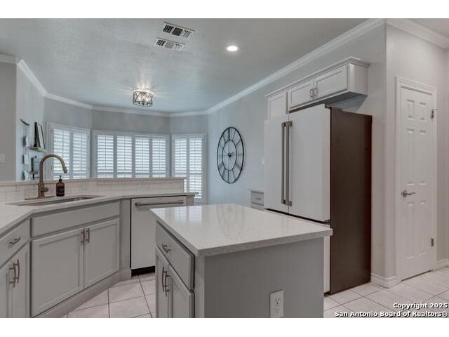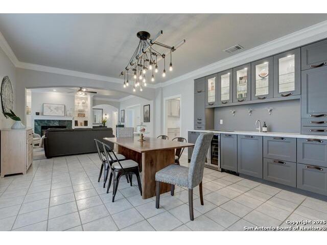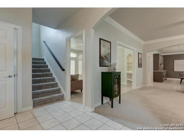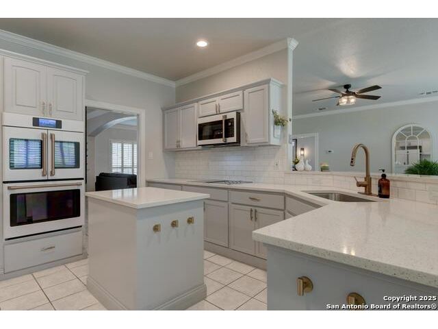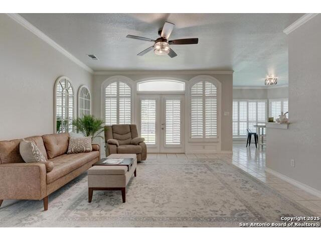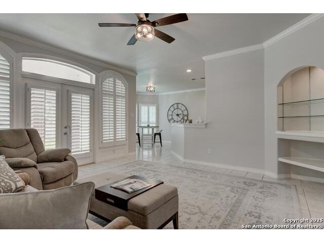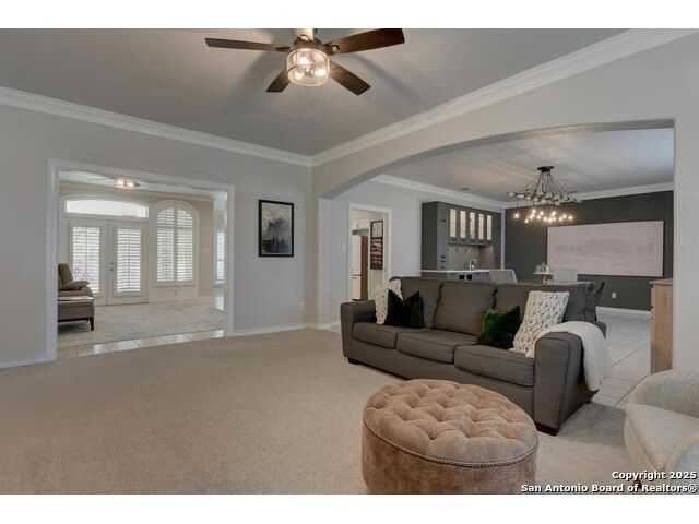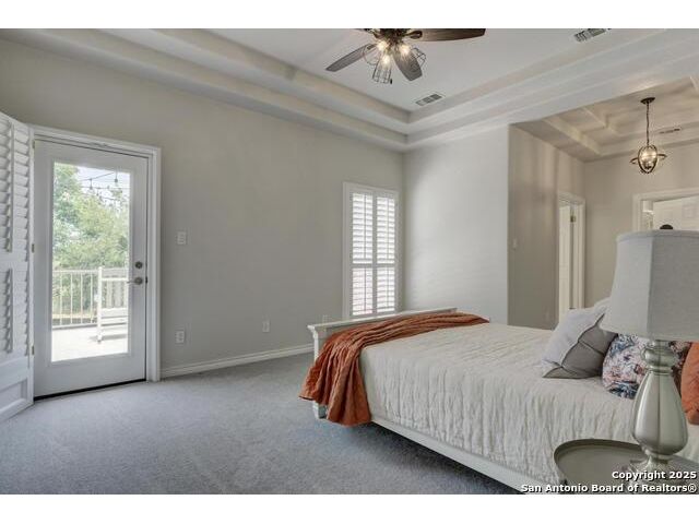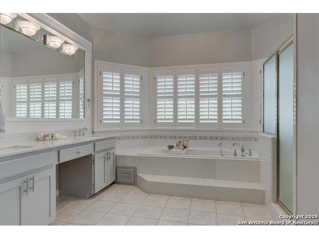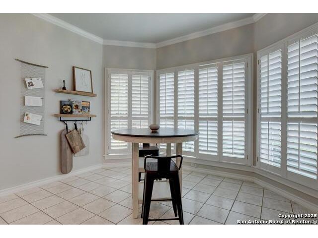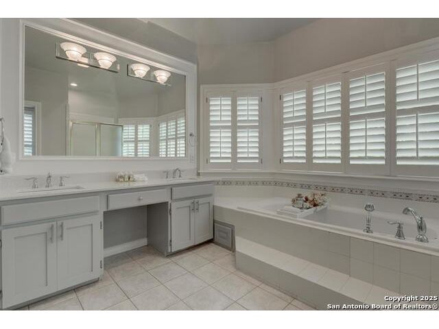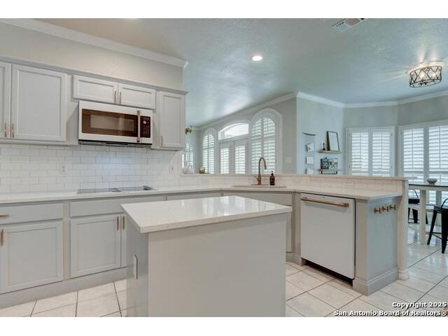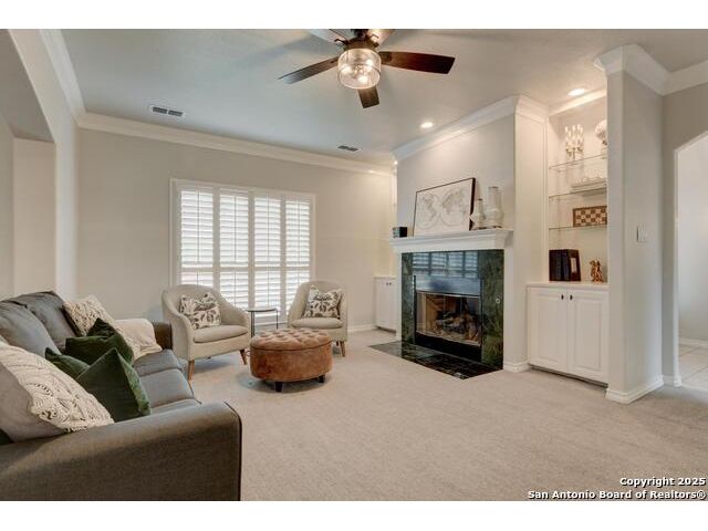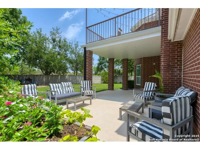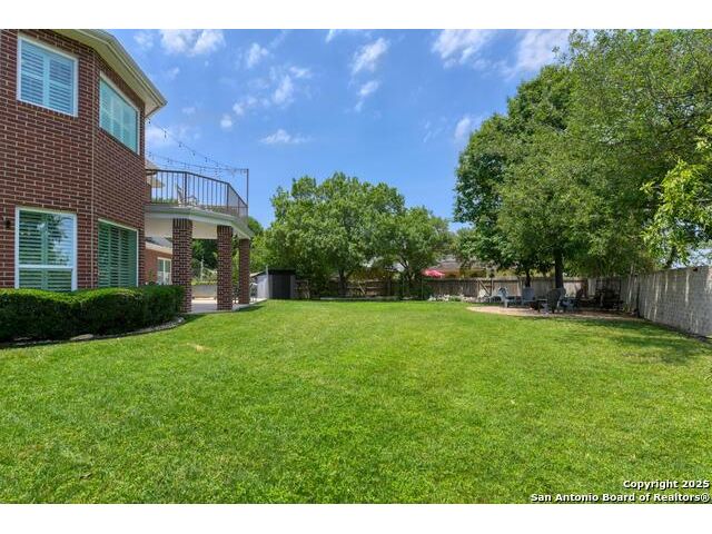 BROKER OPEN HOUSE 12/3/25; 11:30 TO 1 PM Situated on a large, private lot in Oakwell Farms, this wonderful family home is perfect for luxury living and entertaining. Pride of ownership shines in this immaculate, meticulously maintained open floor plan. Large windows throughout are covered with custom made plantation shutters allowing natural light to flood into the home. Stylish kitchen, in the heart of first floor, is upgraded with new GE Cafe appliances with champagne bronze hardware, new farm sink & faucet and dual pantries. An expansive dining room can seat a multitude of guests and is enhanced by a new, unique built in cabinet bank containing wet bar, wine/beverage refrigerator, ice maker and glass front upper lit cabinets. The home showcases five bedrooms of which 3 are ensuite, all with upgraded plumbing fixtures & lighting. Upstairs, one bathroom was stylishly split into two. Primary suite boasts of an ensuite bathroom with dual vanities, spa tub, shower, large closet & sitting area. It opens onto a new large balcony, perfect for morning coffee with sunrise or evening beverage at sunset. Newly created 4th bedroom upstairs along with home office provide extra living/working spaces. Downstairs bedroom has full adjacent bathroom. Oversized laundry room is updated with a 2nd dishwasher, front load washer/dryer, new counter spaces and a half bath. Indoor living is complimented with enlarged back patio area, surrounded by lush, beautifully landscaped private grounds. Oversized garage with long extended driveway and pad are perfect for an abundance of parking/storage of recreational items. This lovely traditional home with modern updates offers privacy and a lifestyle of comfort in an exceptional 24 hour gated community inside Loop 410. Amenities include swimming pool, clubhouse, play areas, walking trails & tennis/pickleball courts. Centrally located in the city, easy access to major highways provide quick routes to the airport, downtown, military bases and the Pearl!