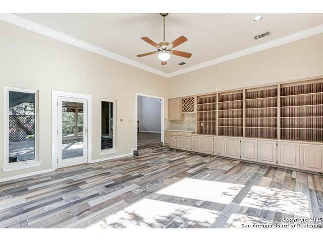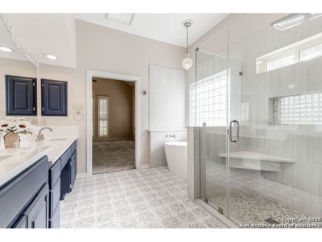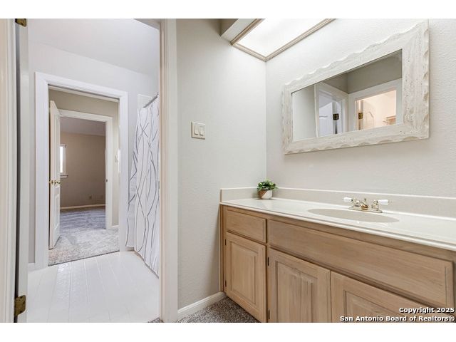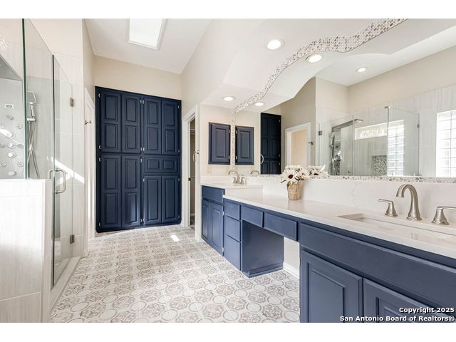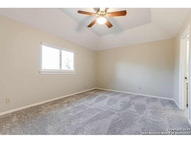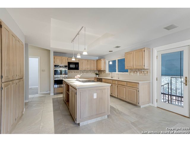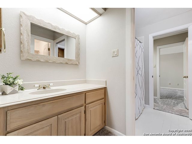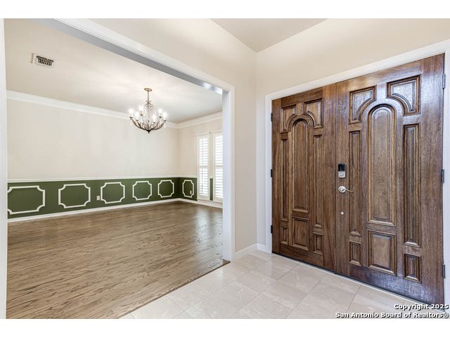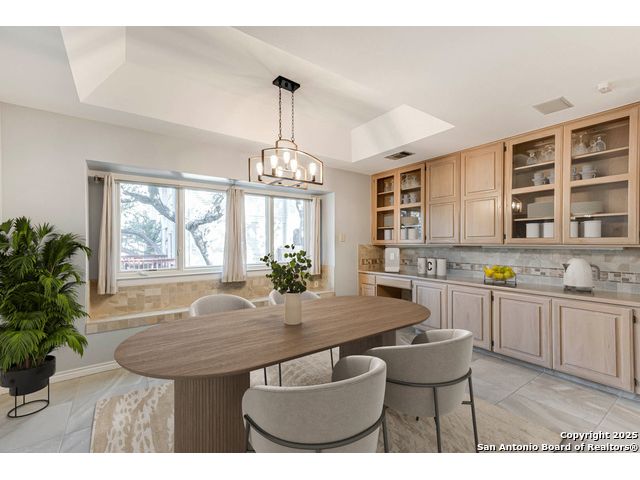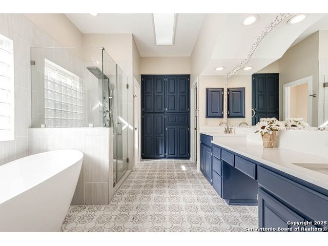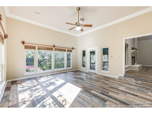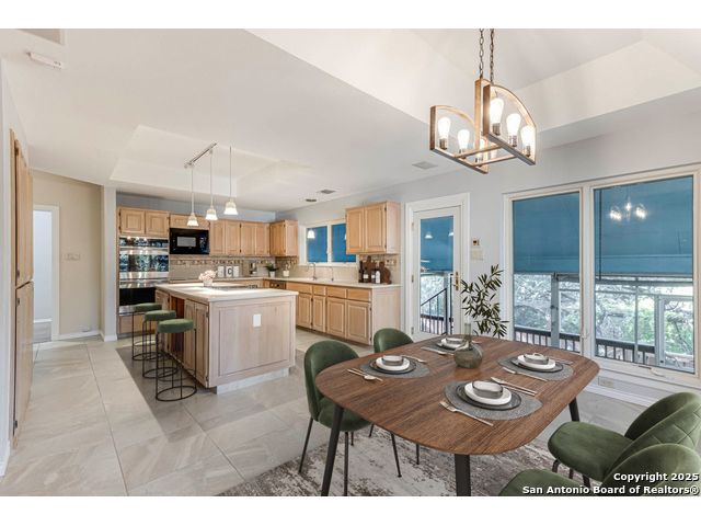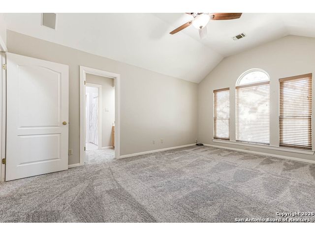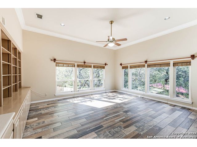 Set among mature oak trees and backing up to a serene greenbelt, this stunning brick home offers timeless curb appeal and a thoughtfully designed THREE-STORY floor plan. The main level features a spacious kitchen with island, double ovens, and abundant cabinetry, opening to the dining and living areas. The primary suite is also on the main floor, showcasing a spa-inspired bath with soaking tub, glass-enclosed shower, dual vanities, and elegant finishes. An open flex space adds versatility for work, study, or hobbies. The second level provides three generously sized bedrooms and two full baths, creating comfortable accommodations for family and guests, while the third floor offers a large game/media room - the perfect space for entertainment, hobbies, or a private retreat. The backyard is a true oasis with a screened-in patio, expansive deck, and sparkling pool. Surrounded by mature trees and designed with multiple seating areas, it's ideal for entertaining or unwinding at home. Located in the desirable Deerfield community, residents enjoy neighborhood amenities including a pool, tennis courts, clubhouse, playground, and BBQ area. Deerfield also benefits from SAPD OFFICERS PATROL, providing enhanced community security. With three convenient entrances off Huebner, Blanco, and Bitters, you'll have easy access in and out of the neighborhood. This Deerfield gem offers the perfect blend of flexible living spaces, outdoor enjoyment, and a secure, community-focused lifestyle.
