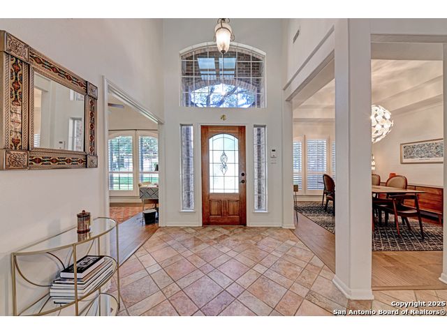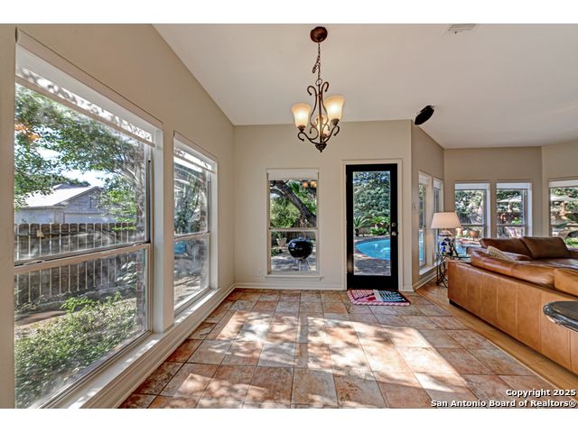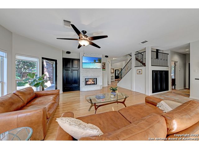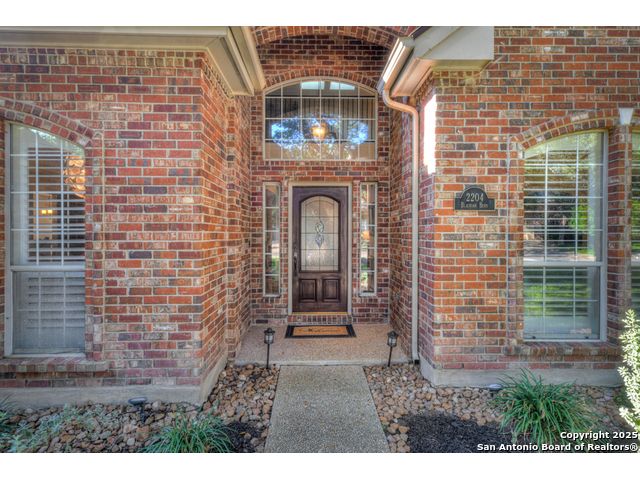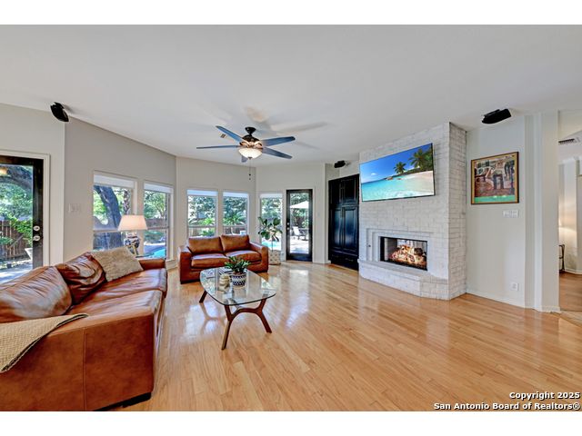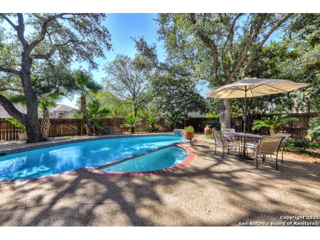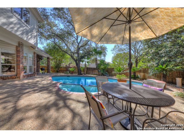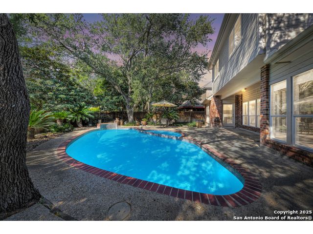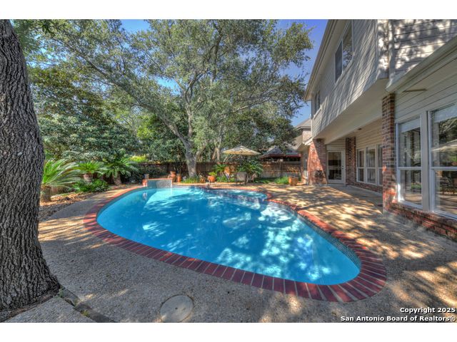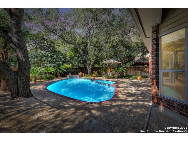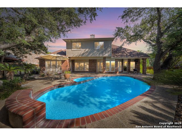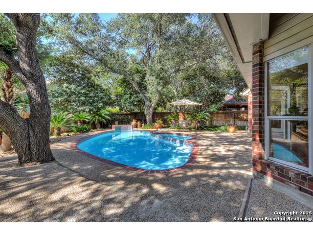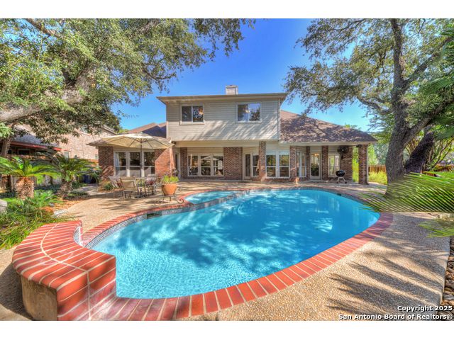 Welcome to Your Oakwood Oasis Fall in love with this beautifully updated home in the gated Oakwood subdivision in Deerfield area of San Antonio - where timeless curb appeal meets a backyard retreat you'll never want to leave. From the moment you enter, your eyes are drawn through the spacious living room to the sparkling pool beyond. The formal dining room sets the stage for celebrations, while a private home office with views of the lush front yard offers the perfect spot for work or study. The open-concept living and family rooms share a gas fireplace, creating warm spaces for gatherings big and small. In the chef's kitchen, granite counters, stainless appliances, a wine fridge, and designer lighting elevate every meal - from casual breakfasts at the bar to festive dinners with friends. Step into the backyard and discover your personal paradise: a heated pool and spa surrounded by lush landscaping and accent lighting, offering year-round enjoyment. The first-floor primary suite feels like a retreat, complete with wood floors, vaulted ceiling, backyard access, a spa-inspired bath, and a generous walk-in closet. Upstairs, a skylit loft offers flexible space for a media room, home gym, or playroom, with two additional bedrooms each featuring walk-in closets. An oversized side-entry garage, abundant storage throughout, and thoughtful details like a utility room with sink and extra fridge make this home as practical as it is beautiful. An amazing home, in an amazing location - ready to welcome its next chapter.