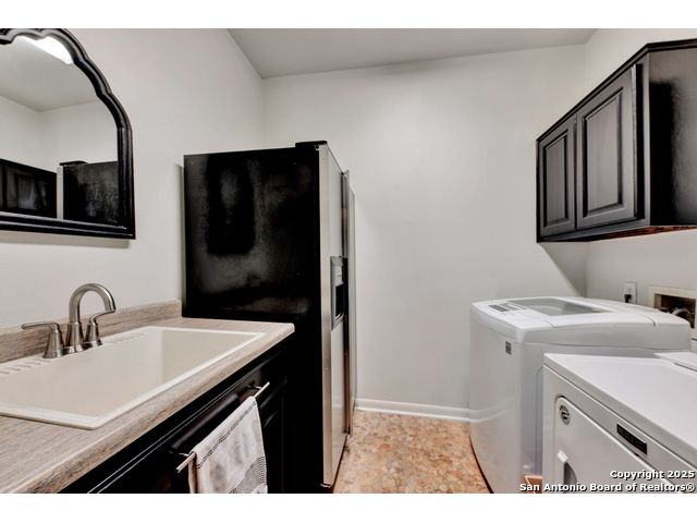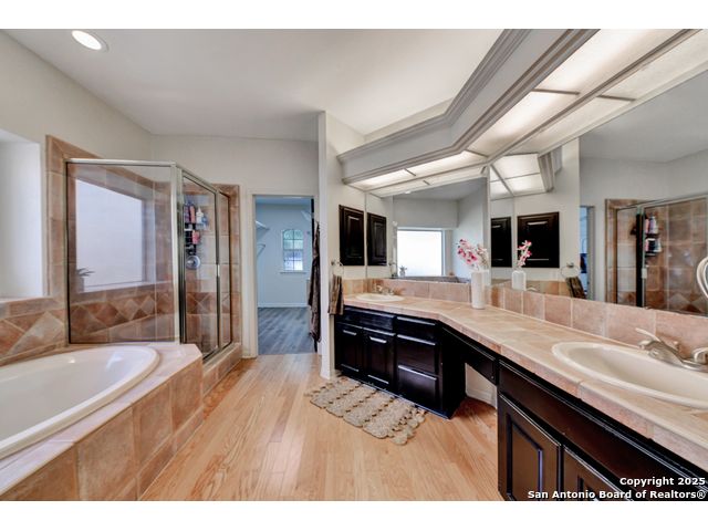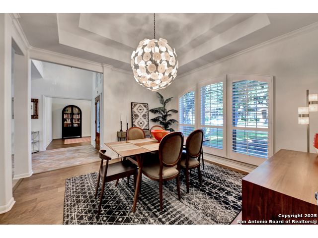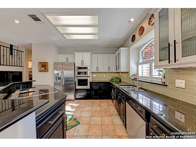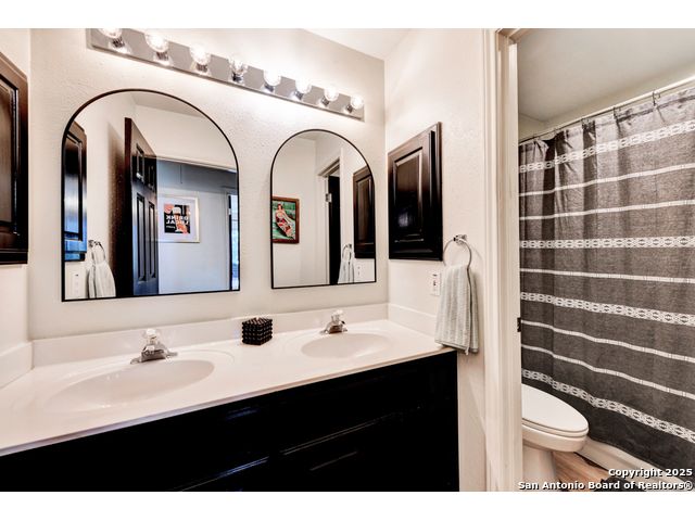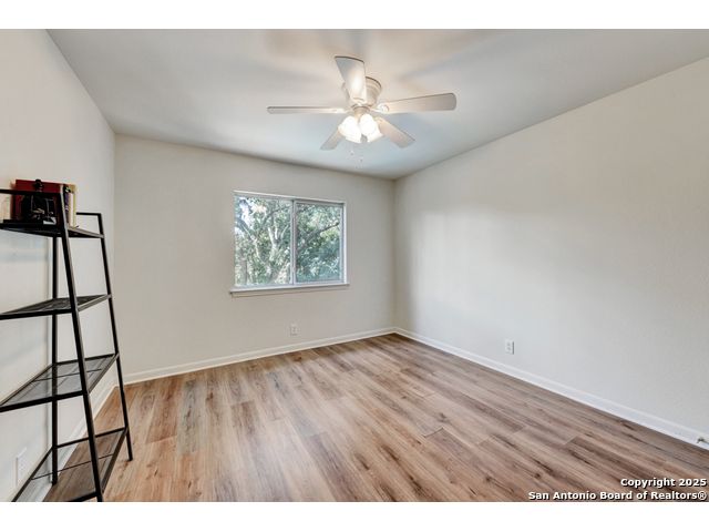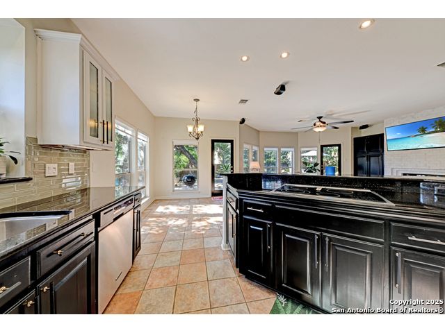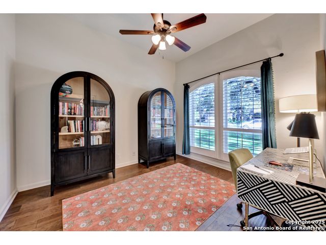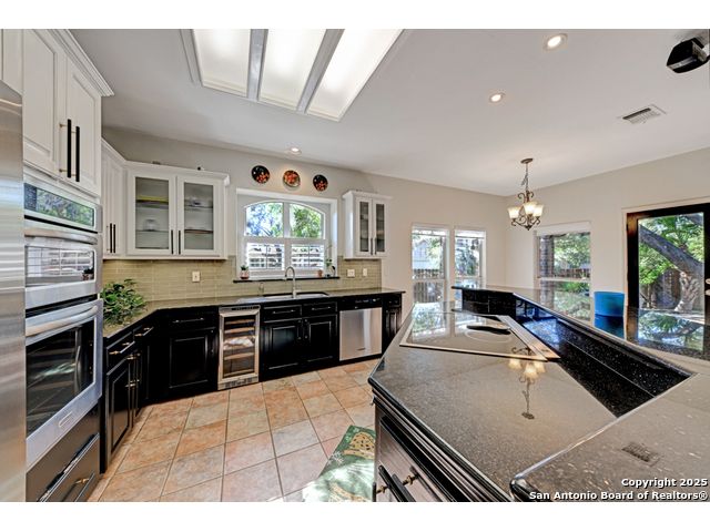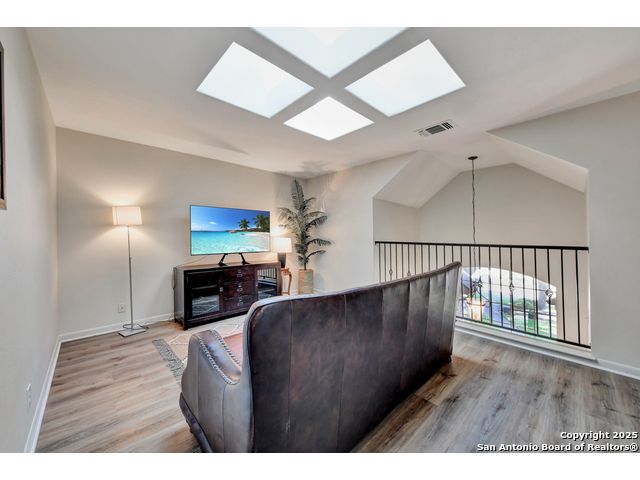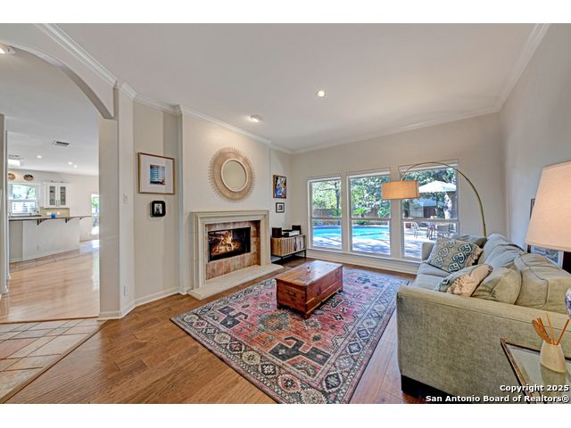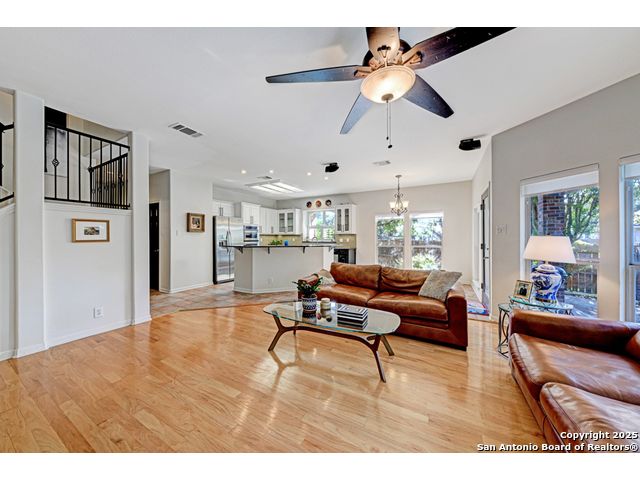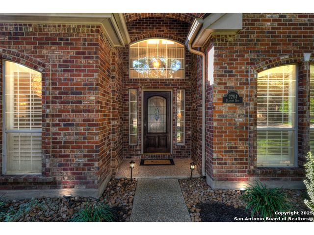 Welcome to Your Oakwood Oasis Fall in love with this beautifully updated home in the gated Oakwood subdivision in Deerfield area of San Antonio - where timeless curb appeal meets a backyard retreat you'll never want to leave. From the moment you enter, your eyes are drawn through the spacious living room to the sparkling pool beyond. The formal dining room sets the stage for celebrations, while a private home office with views of the lush front yard offers the perfect spot for work or study. The open-concept living and family rooms share a gas fireplace, creating warm spaces for gatherings big and small. In the chef's kitchen, granite counters, stainless appliances, a wine fridge, and designer lighting elevate every meal - from casual breakfasts at the bar to festive dinners with friends. Step into the backyard and discover your personal paradise: a heated pool and spa surrounded by lush landscaping and accent lighting, offering year-round enjoyment. The first-floor primary suite feels like a retreat, complete with wood floors, vaulted ceiling, backyard access, a spa-inspired bath, and a generous walk-in closet. Upstairs, a skylit loft offers flexible space for a media room, home gym, or playroom, with two additional bedrooms each featuring walk-in closets. An oversized side-entry garage, abundant storage throughout, and thoughtful details like a utility room with sink and extra fridge make this home as practical as it is beautiful. An amazing home, in an amazing location - ready to welcome its next chapter.
